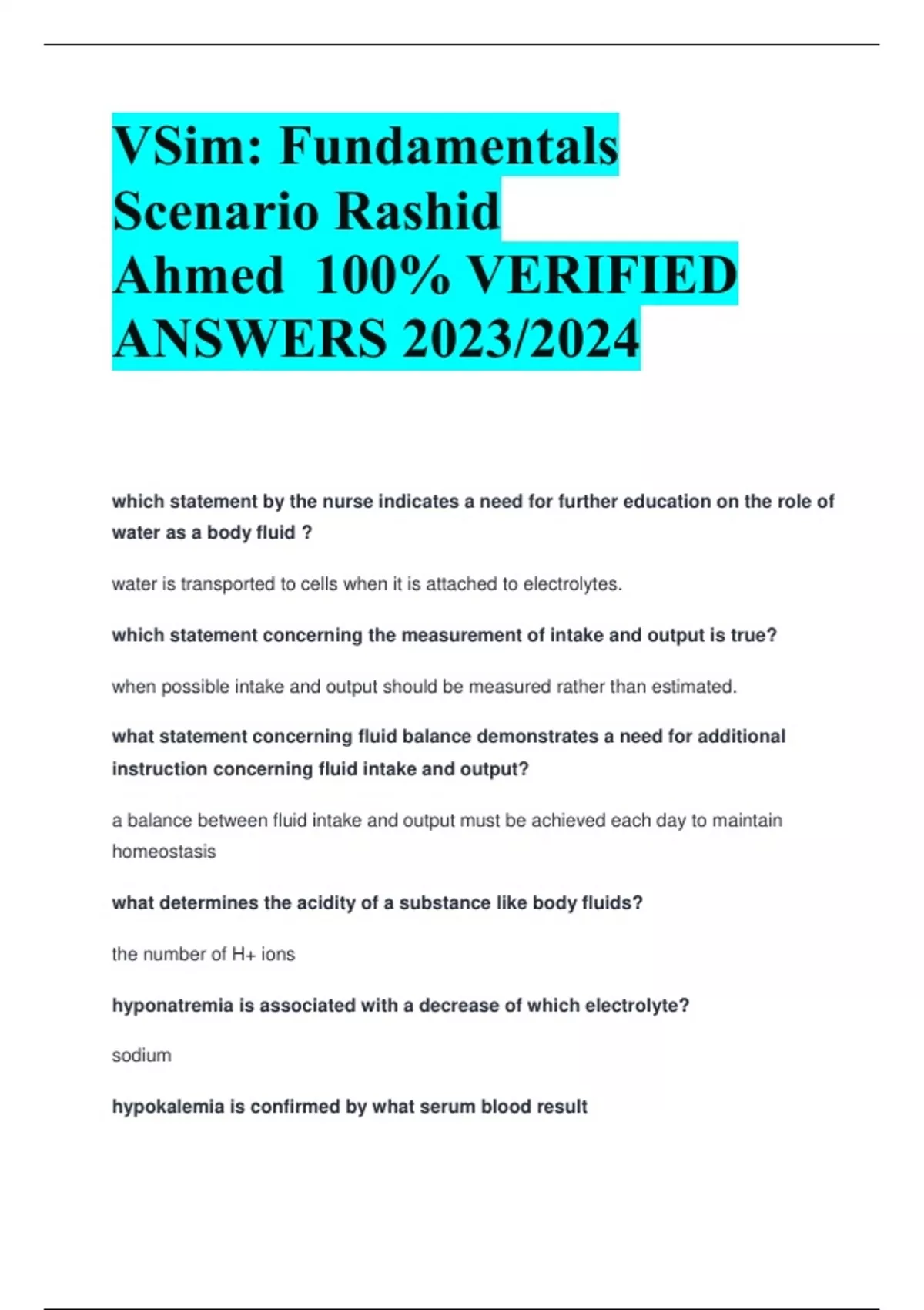 VSim: Fundamentals Scenario Rashid Ahmed 100% VERIFIED ANSWERS 2023/2024