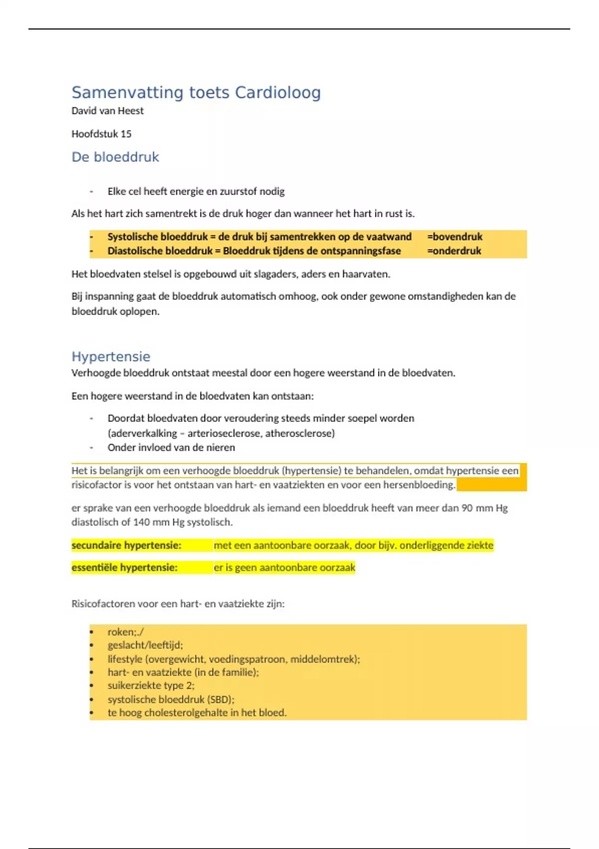 Als het hart zich samentrekt is de druk hoger dan wanneer het hart in rust is.