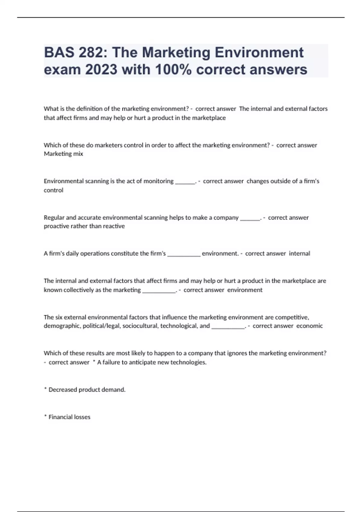 bas 282 the marketing environment exam 2023 with