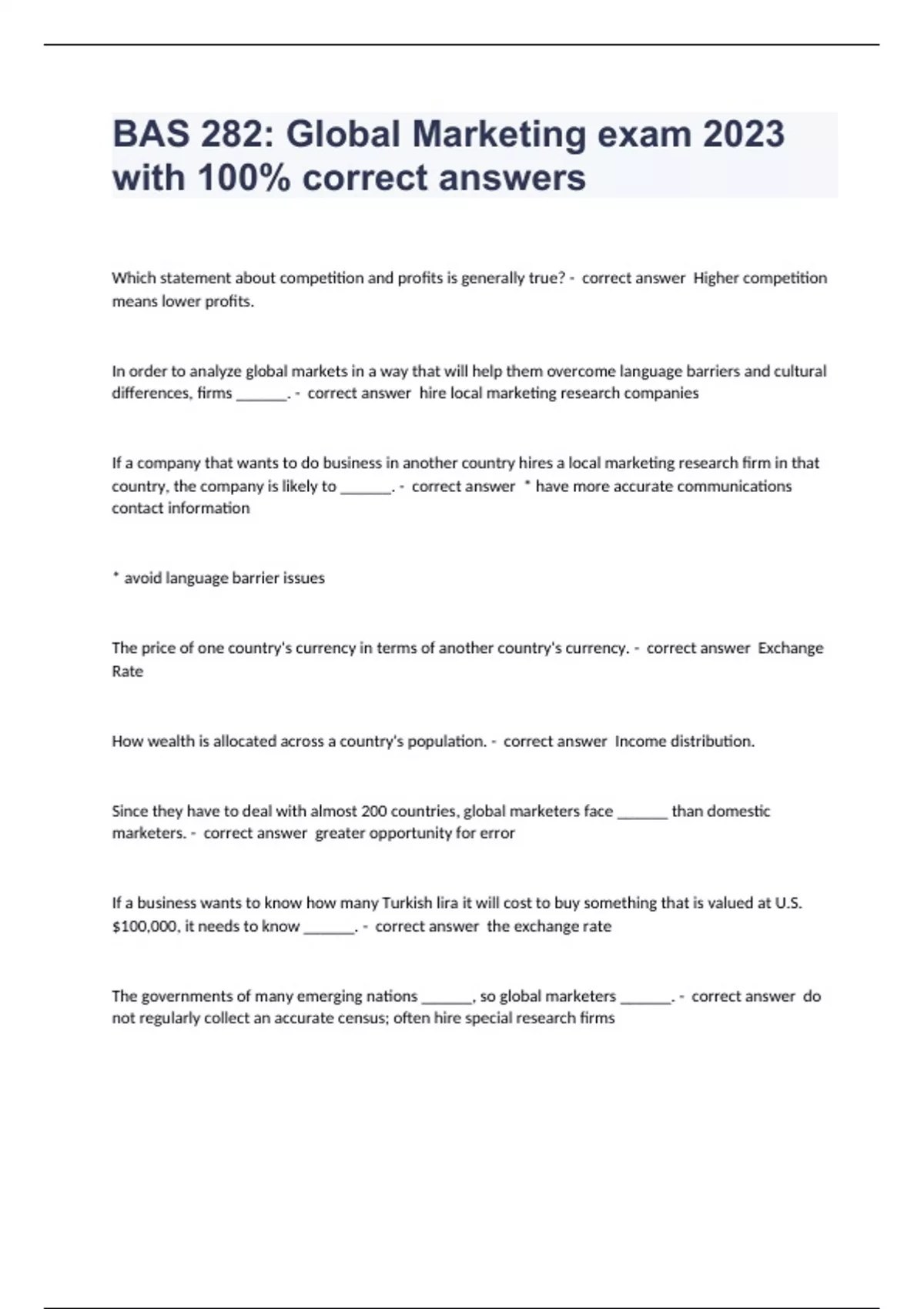 BAS 282: Global Marketing exam 2023 with 100% correct answers