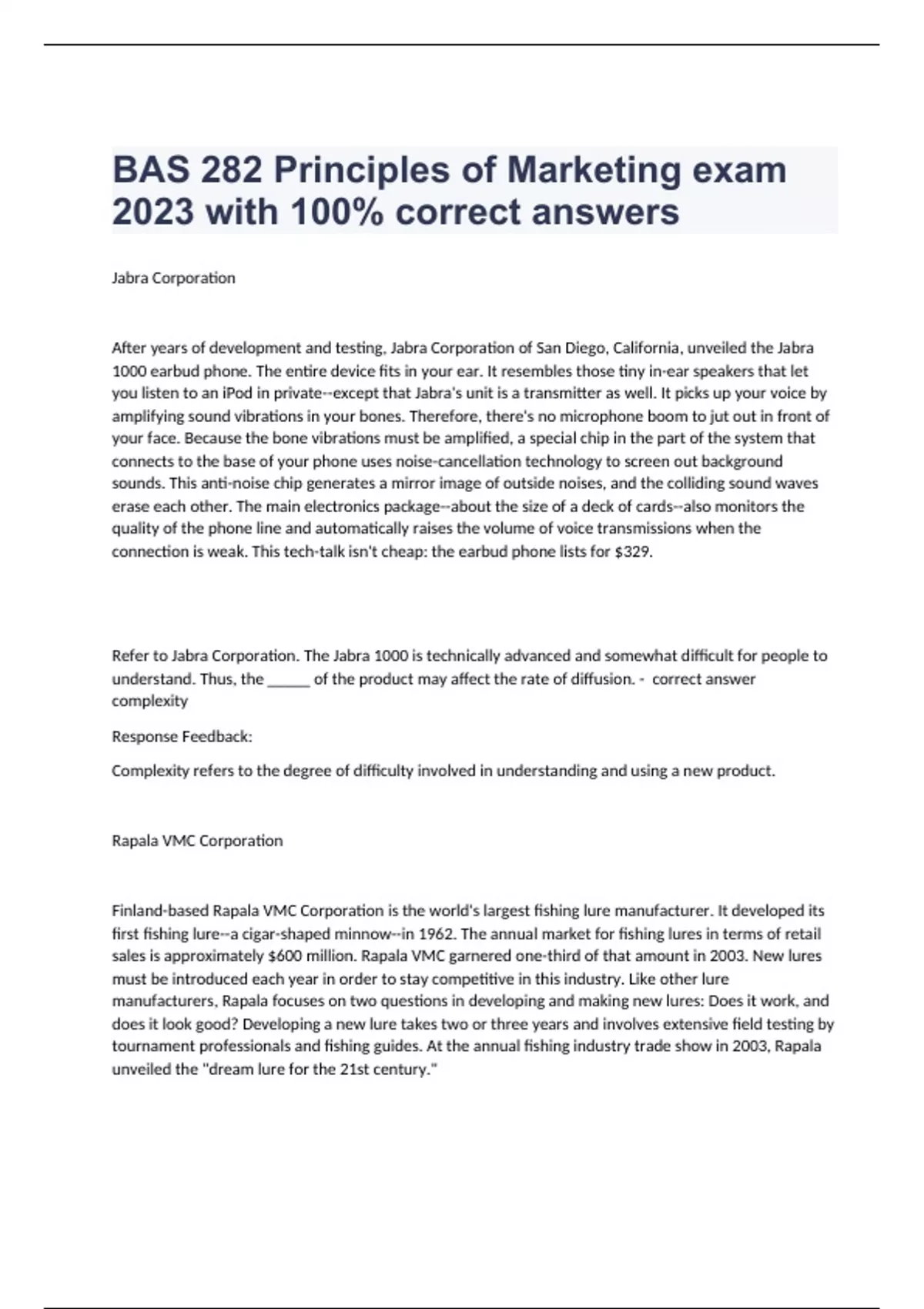 bas 282 principles of marketing exam 2023 with 100