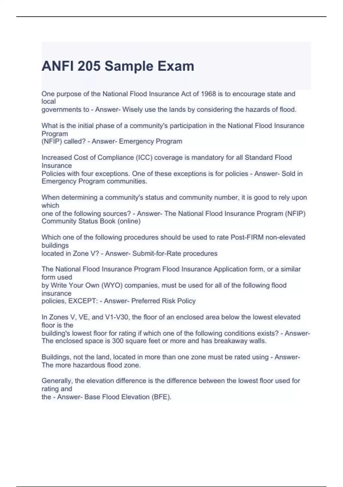 ANFI 205 Sample Exam with complete solutions