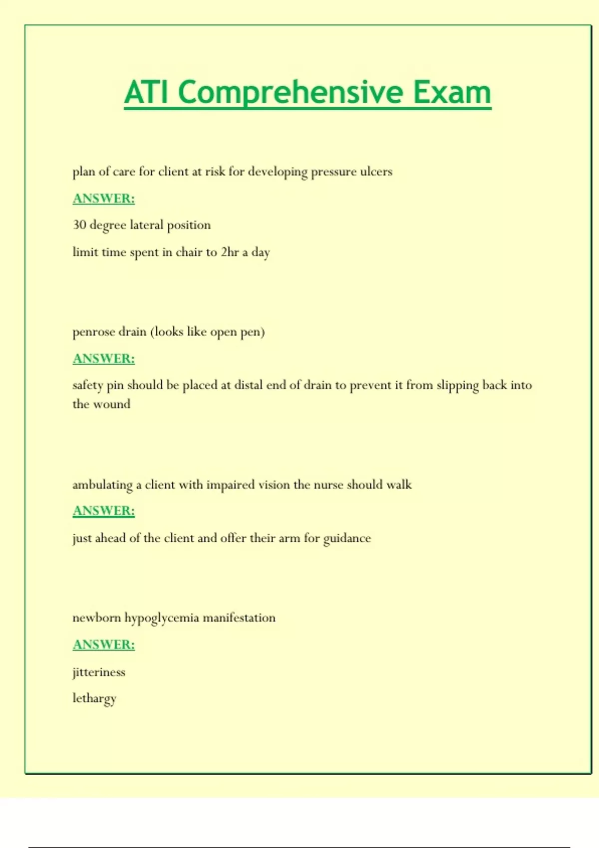 ATI Comprehensive Exam Questions & Answers
