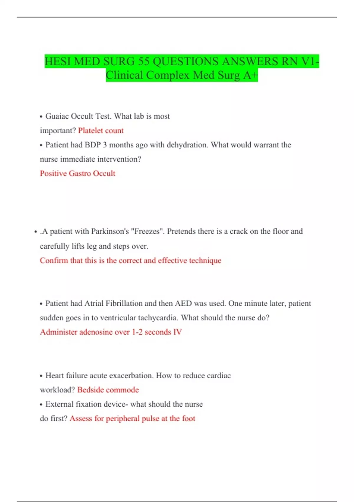 hesi med surg 55 rn v1 clinical questions answers
