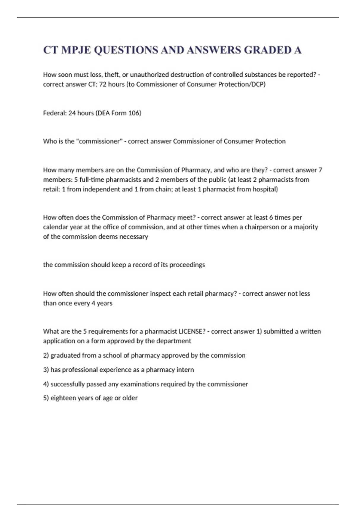 CT MPJE QUESTIONS AND ANSWERS GRADED A