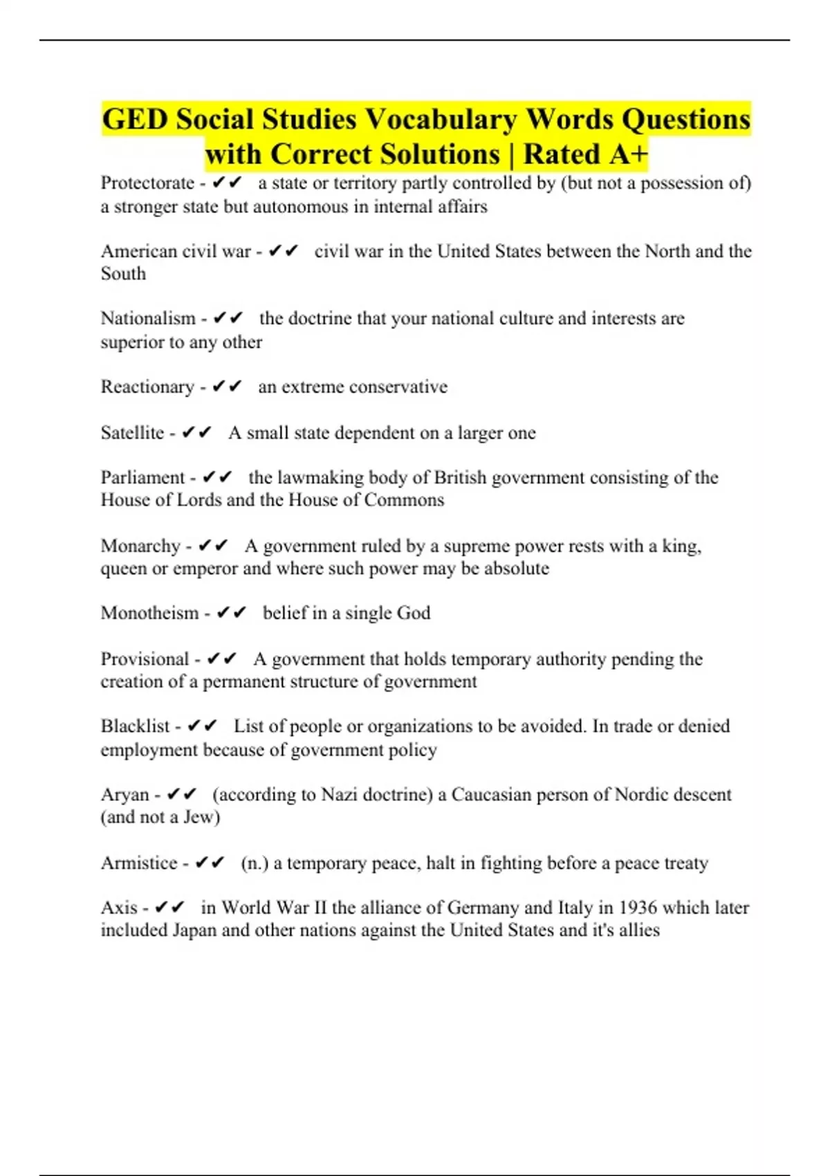 GED Social Studies Vocabulary Words Questions with Correct Solutions | Rated A+