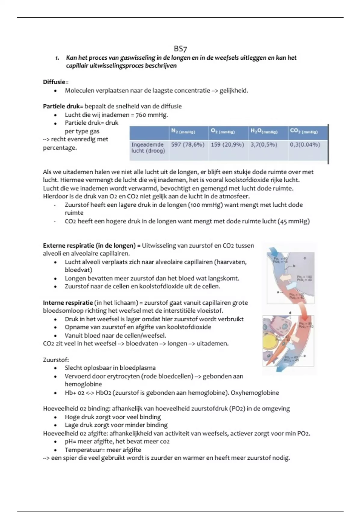 1. Kan het proces van gaswisseling in de longen en in de weefsels uitleggen en kan het