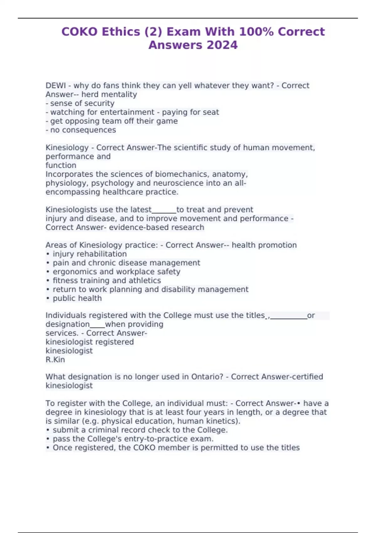COKO Ethics (2) Exam With 100% Correct Answers 2024