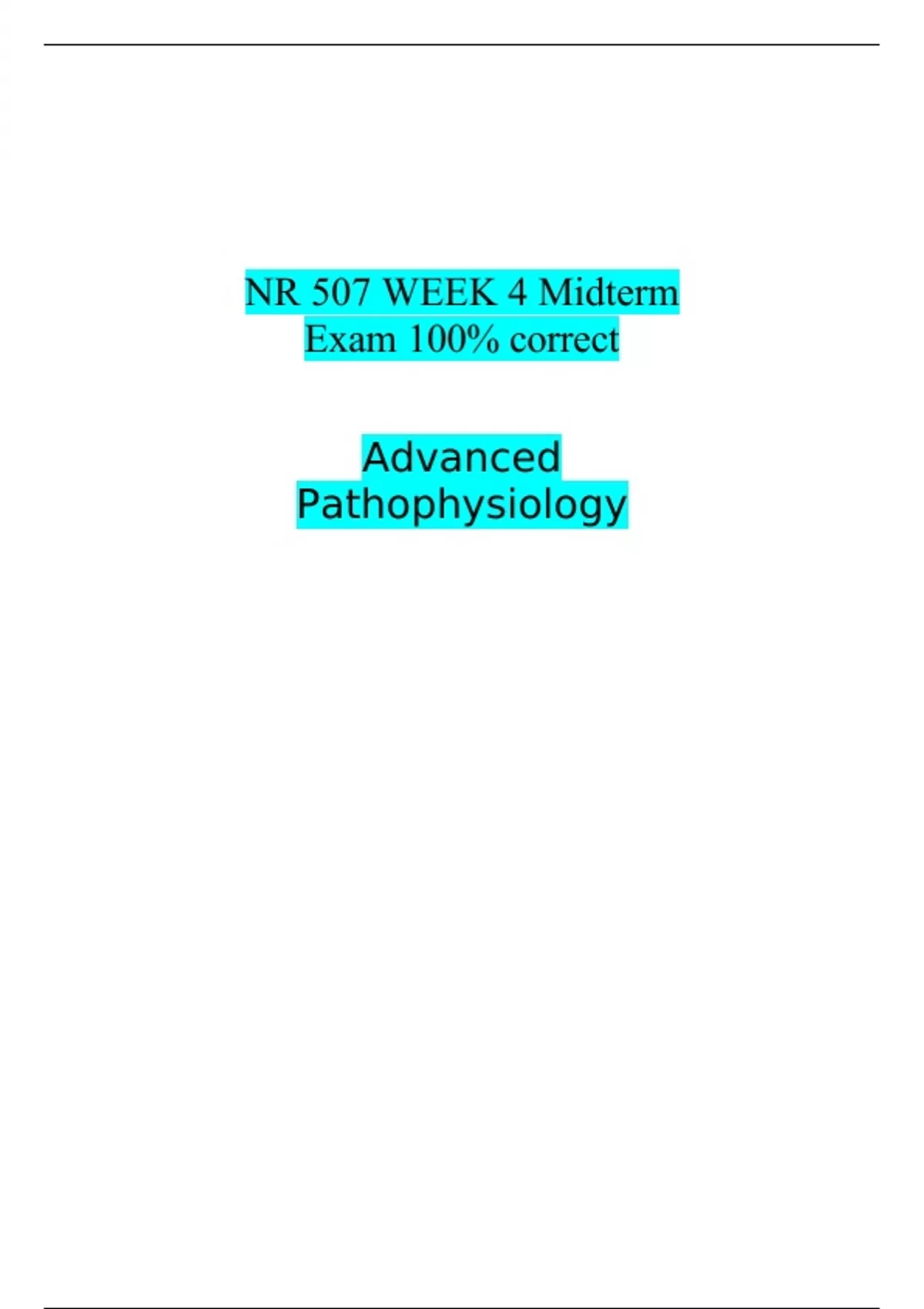 NR 507 Week 4 Midterm Exam Advanced Pathophysiology