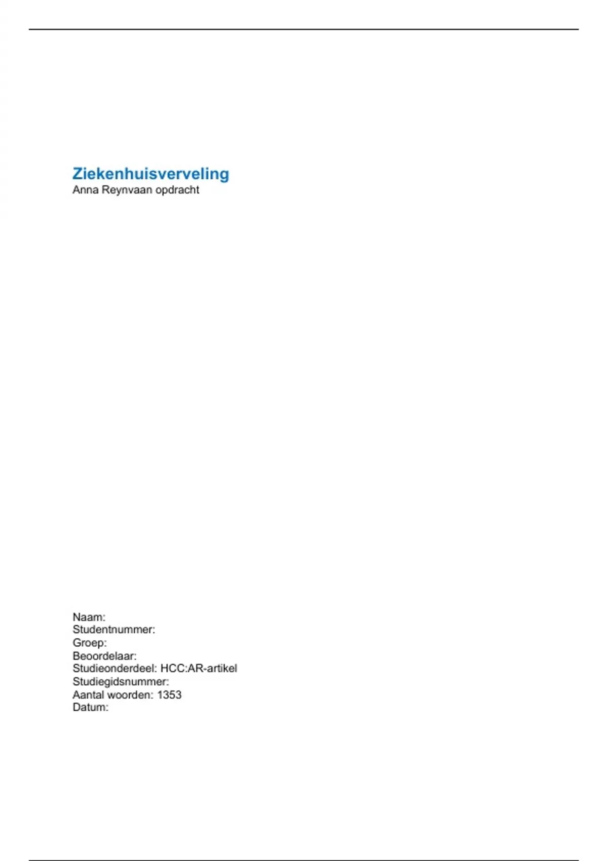 In het 3e jaar van HBO-V wordt de opdracht Anna Reynvaan gemaakt. Dit is een voorbeeld van deze opdracht met als onderwerp ziekenhuisverveling.