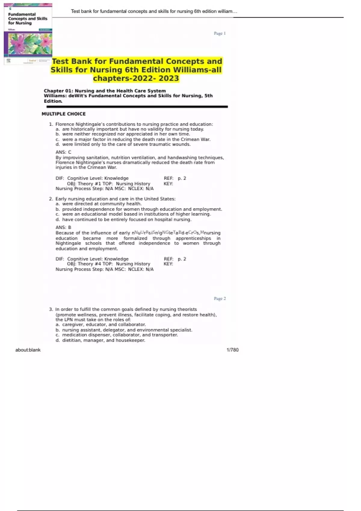 A Complete A+ Grade TEST BANK FOR FUNDAMENTALS CONCEPTS AND SKILLS FOR NURSING 6TH EDITION WILLIAMS, ALL CHAPTERS INCLUDED,