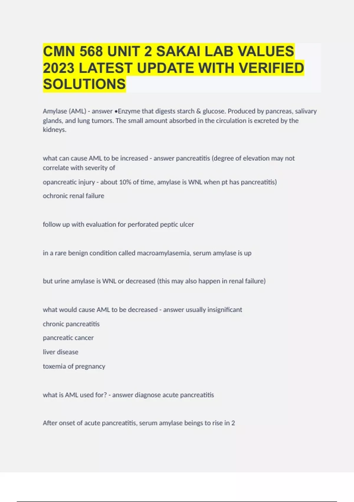 cmn 568 unit 2 sakai lab values 2023 latest update