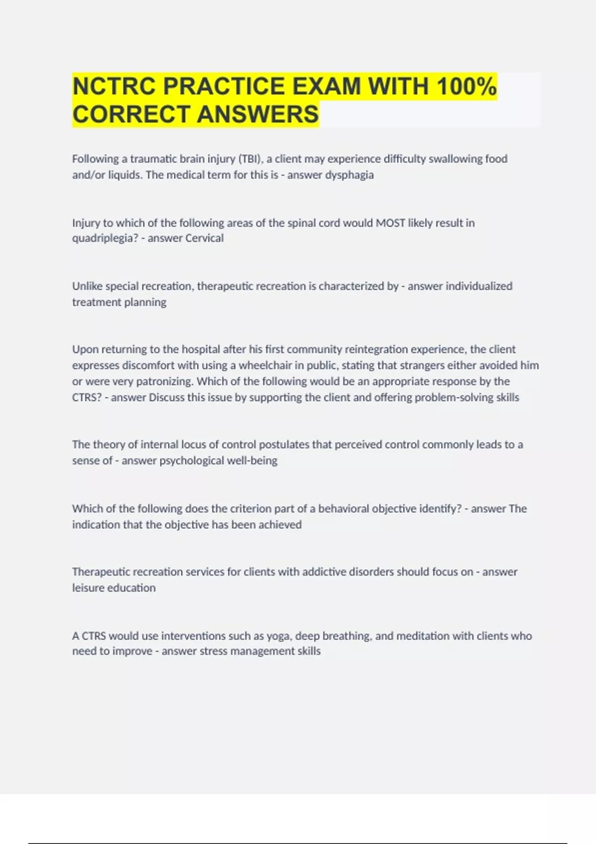 NCTRC PRACTICE EXAM WITH 100% CORRECT ANSWERS