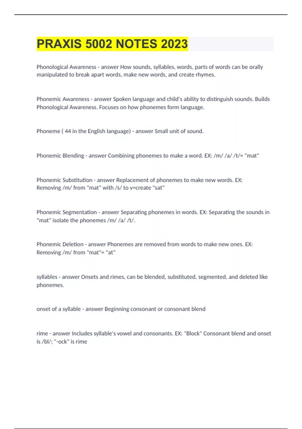 Exam of 11 pages for the course at Havard School (PRAXIS 5002 NOTES)
