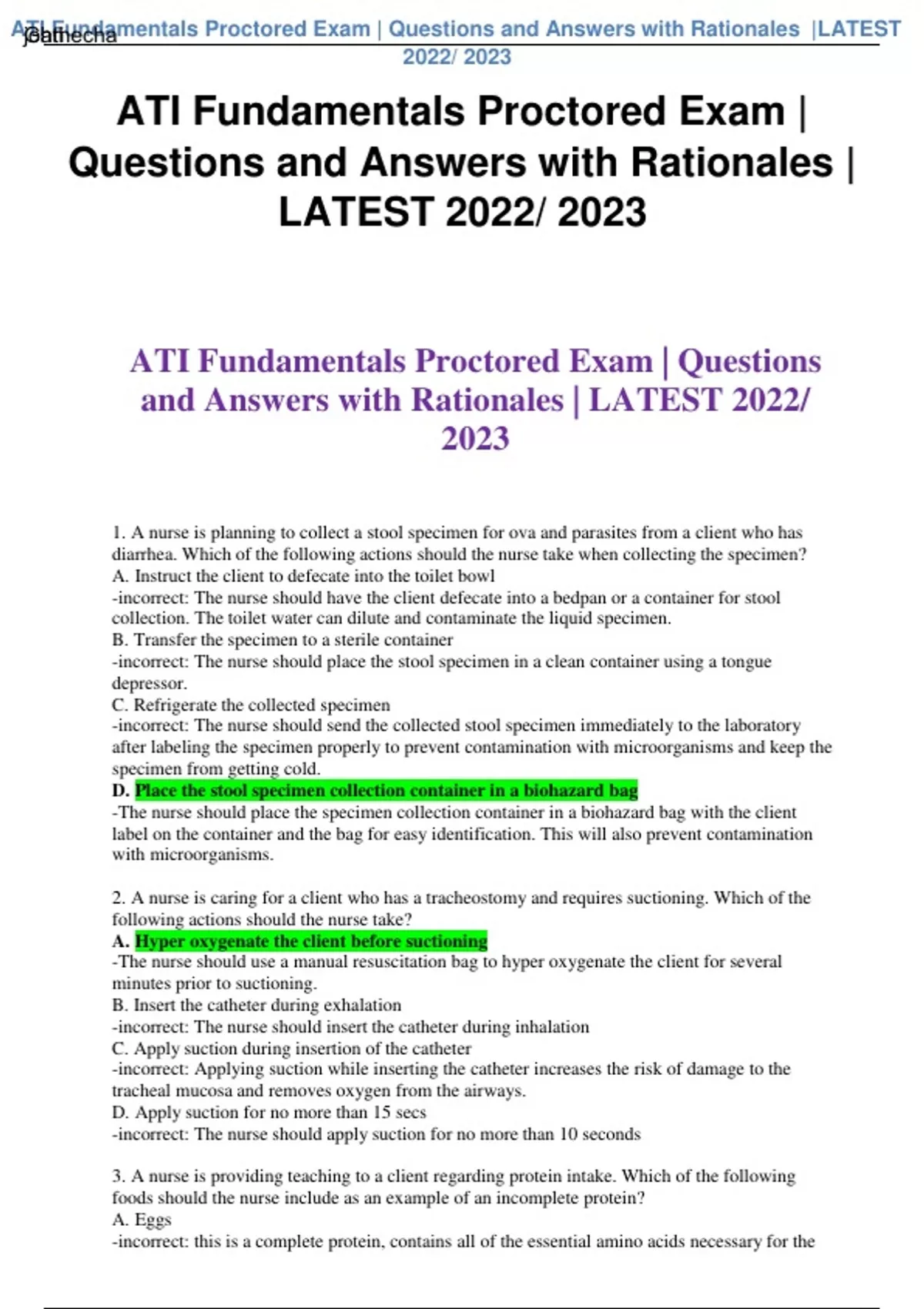 , ATI Fundamentals Proctored Exam | Questions and Answers with Rationales |LATEST