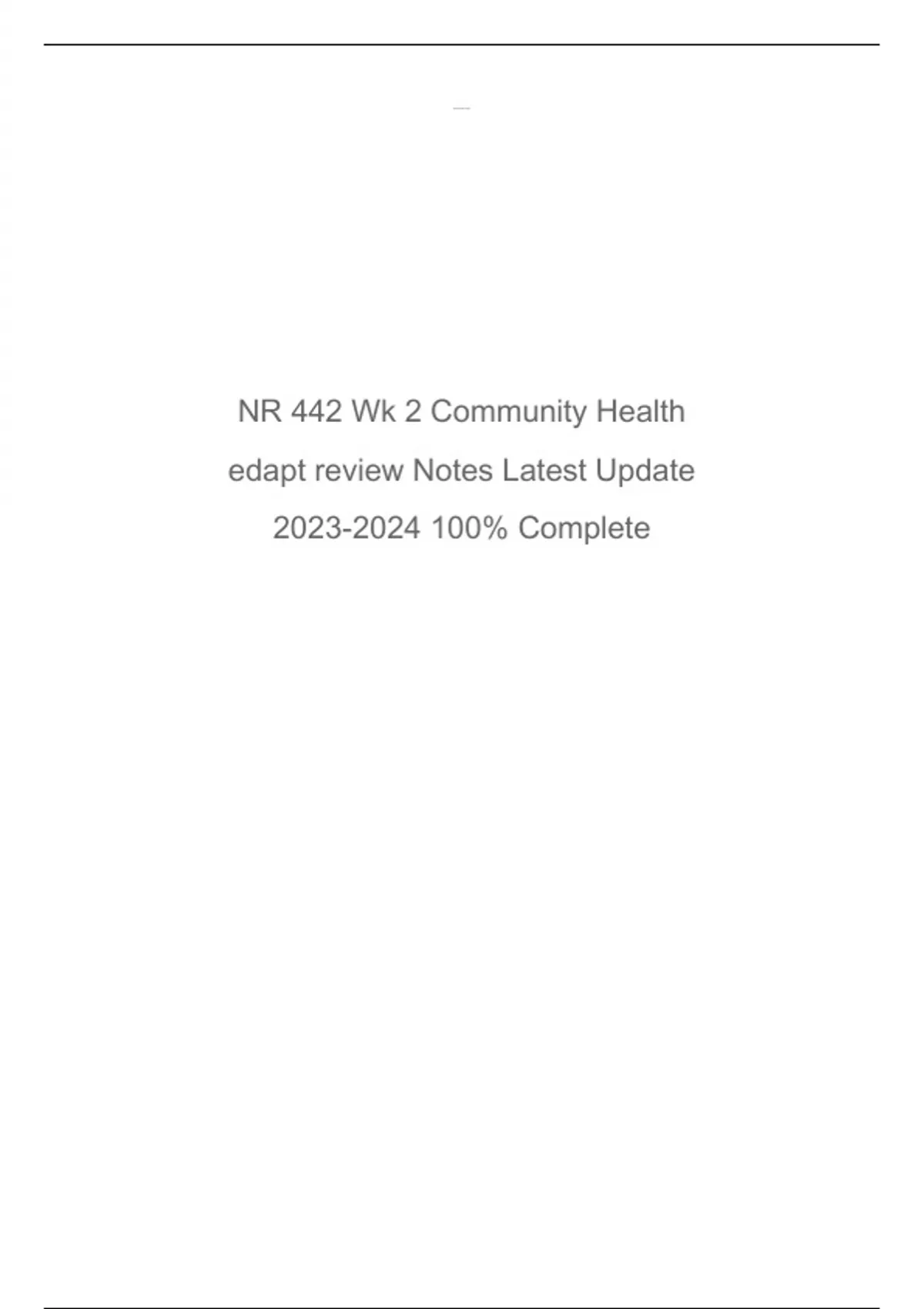 NR 442 Wk 2 Community Health edapt review Notes Latest Update % Complete