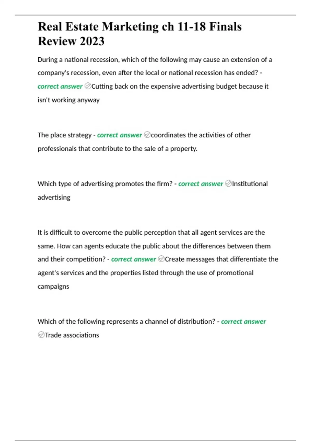Real Estate Marketing ch 11-18 Finals Review 2023