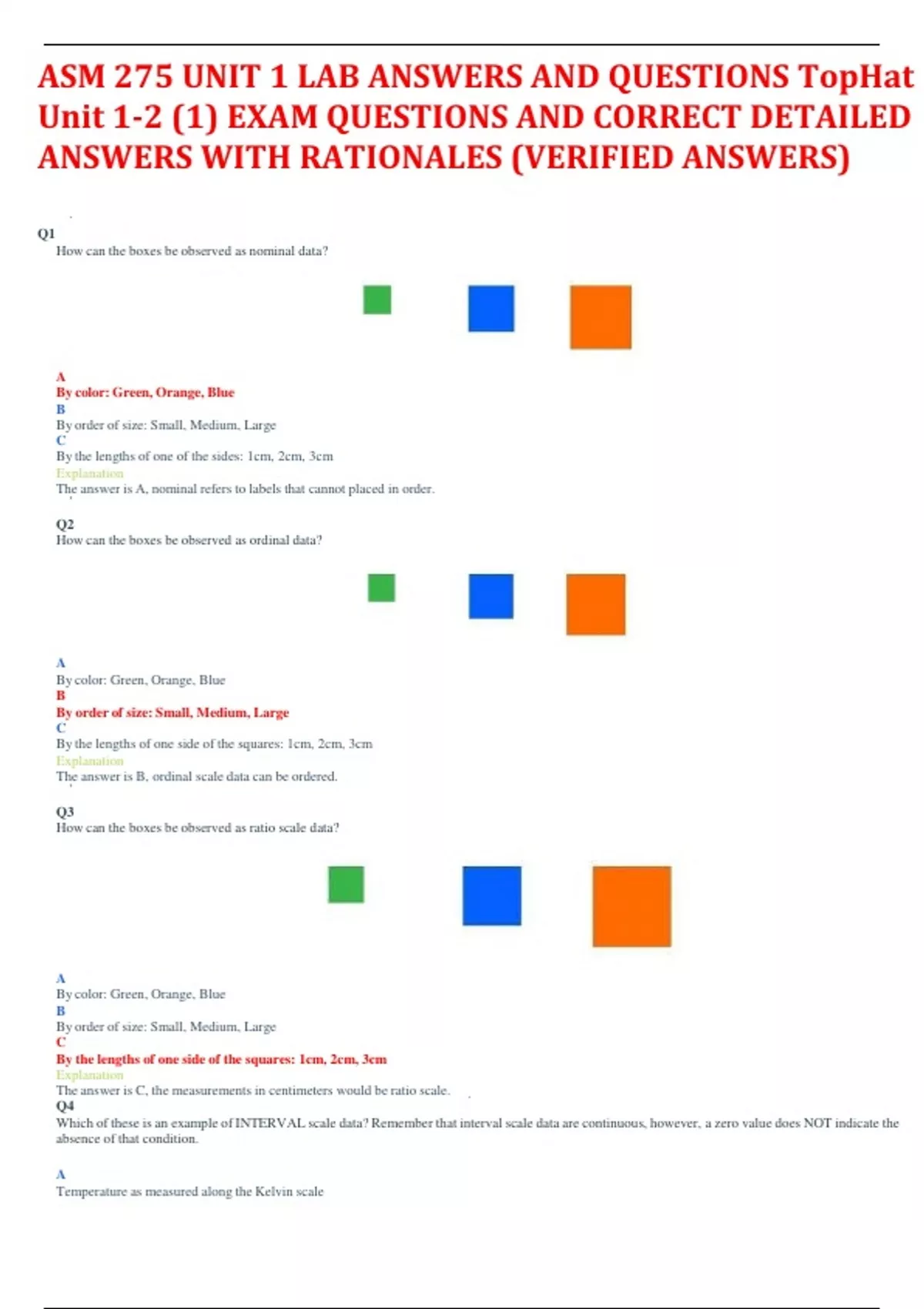 ASM 275 UNIT 1 LAB ANSWERS AND QUESTIONS TopHat Unit 1-2 (1) EXAM QUESTIONS AND CORRECT DETAILED ANSWERS WITH RATIONALES (VERIFIED ANSWERS)