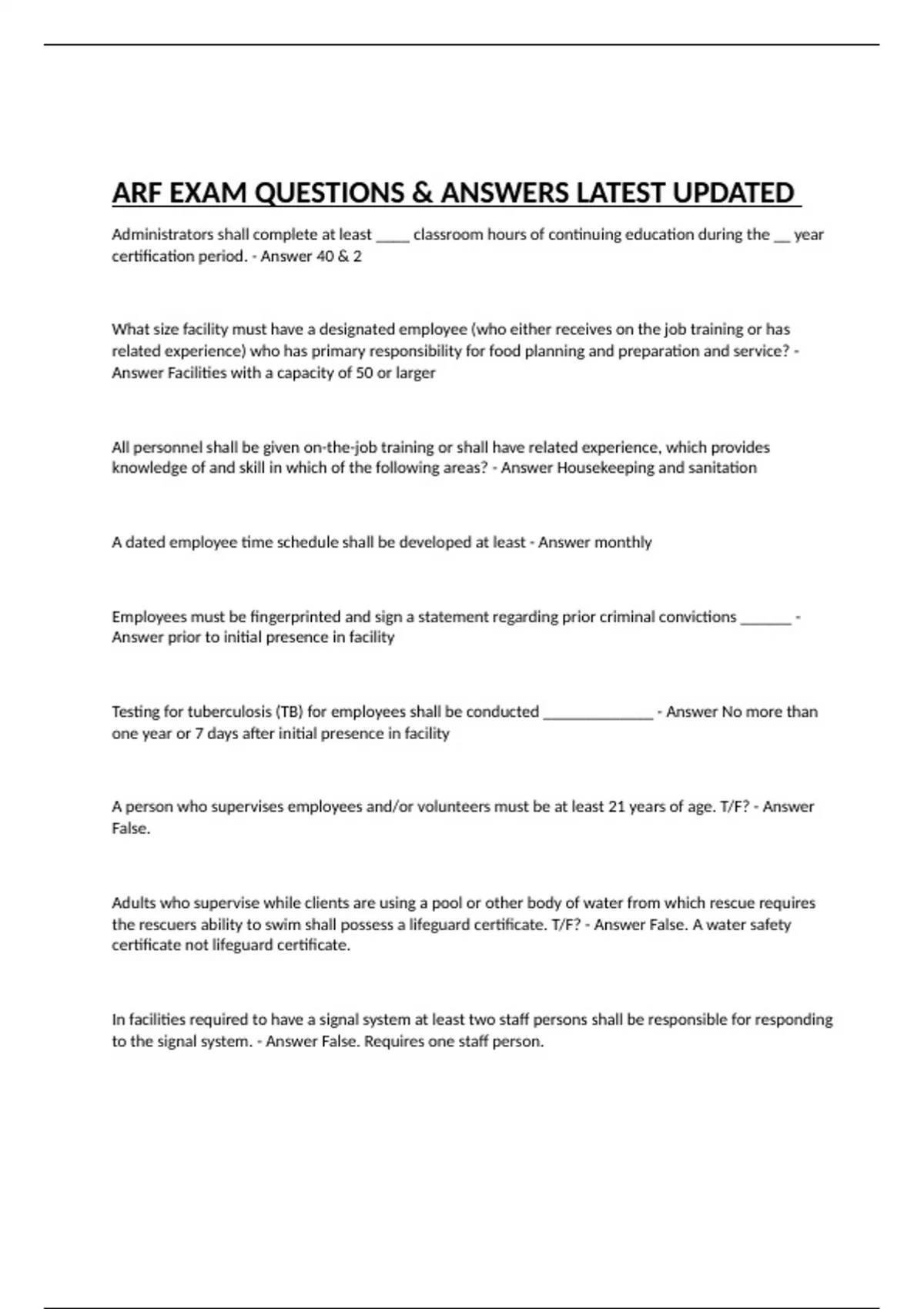 ARF EXAM QUESTIONS & ANSWERS LATEST UPDATED