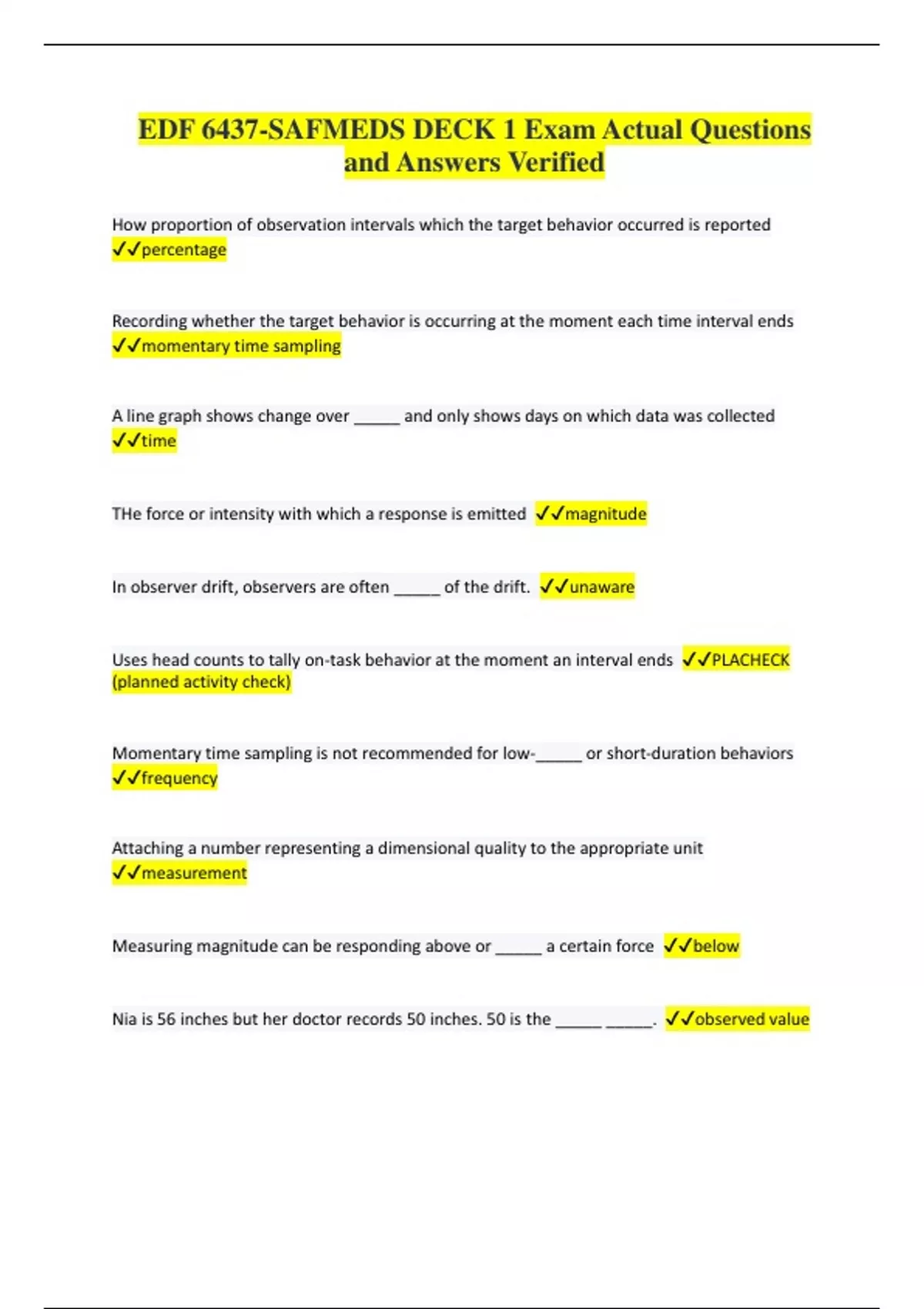 EDF 6437-SAFMEDS DECK 1 Exam Actual Questions and Answers Verified