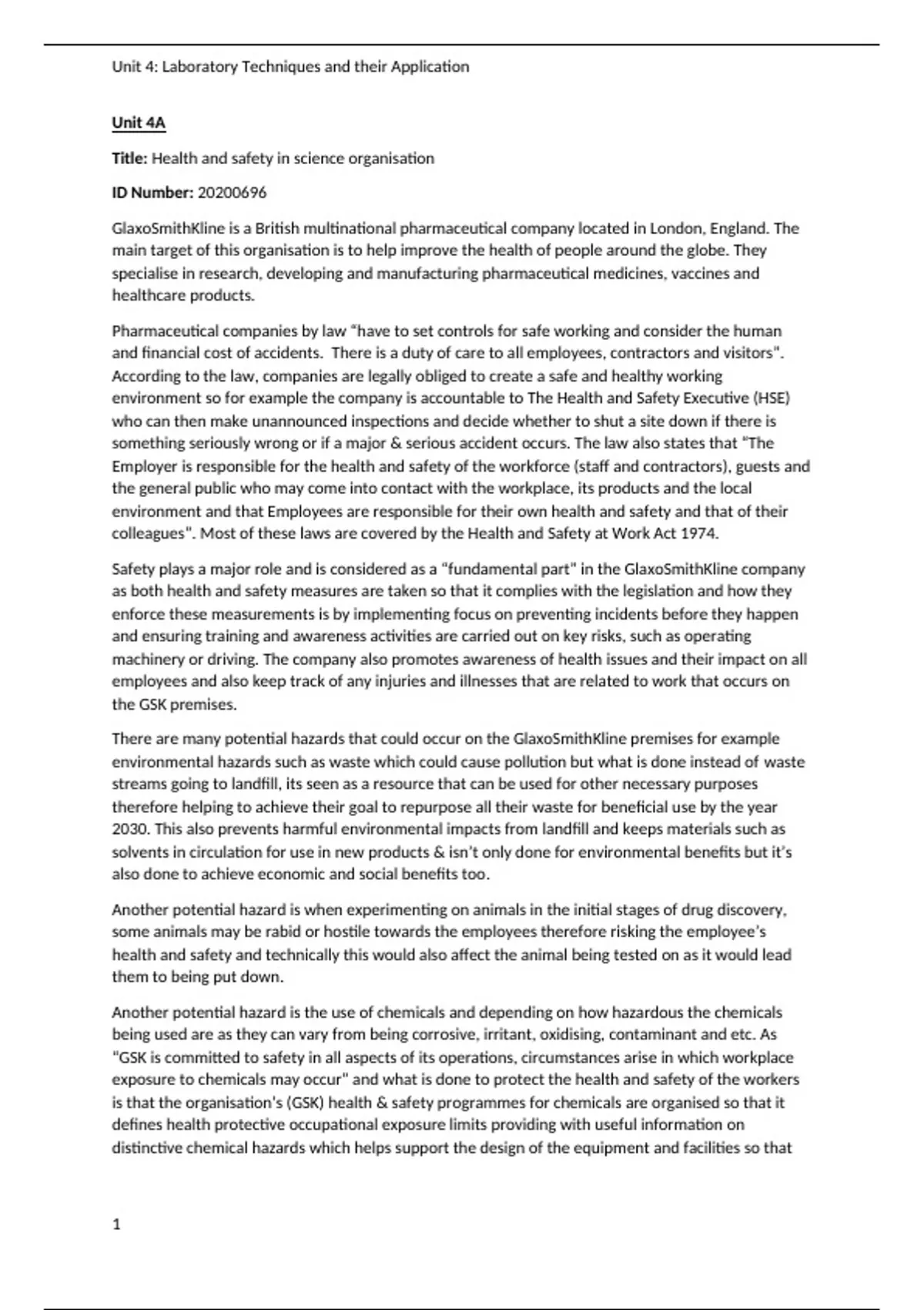 is that the organisation’s (GSK) health & safety programmes for chemicals are organised so that it