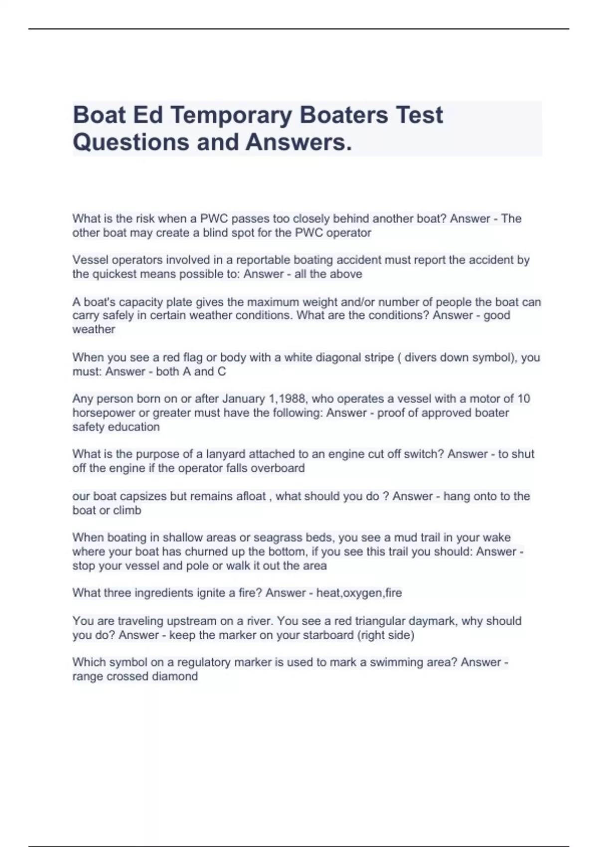 Boat Ed Temporary Boaters Test Questions and Answers.