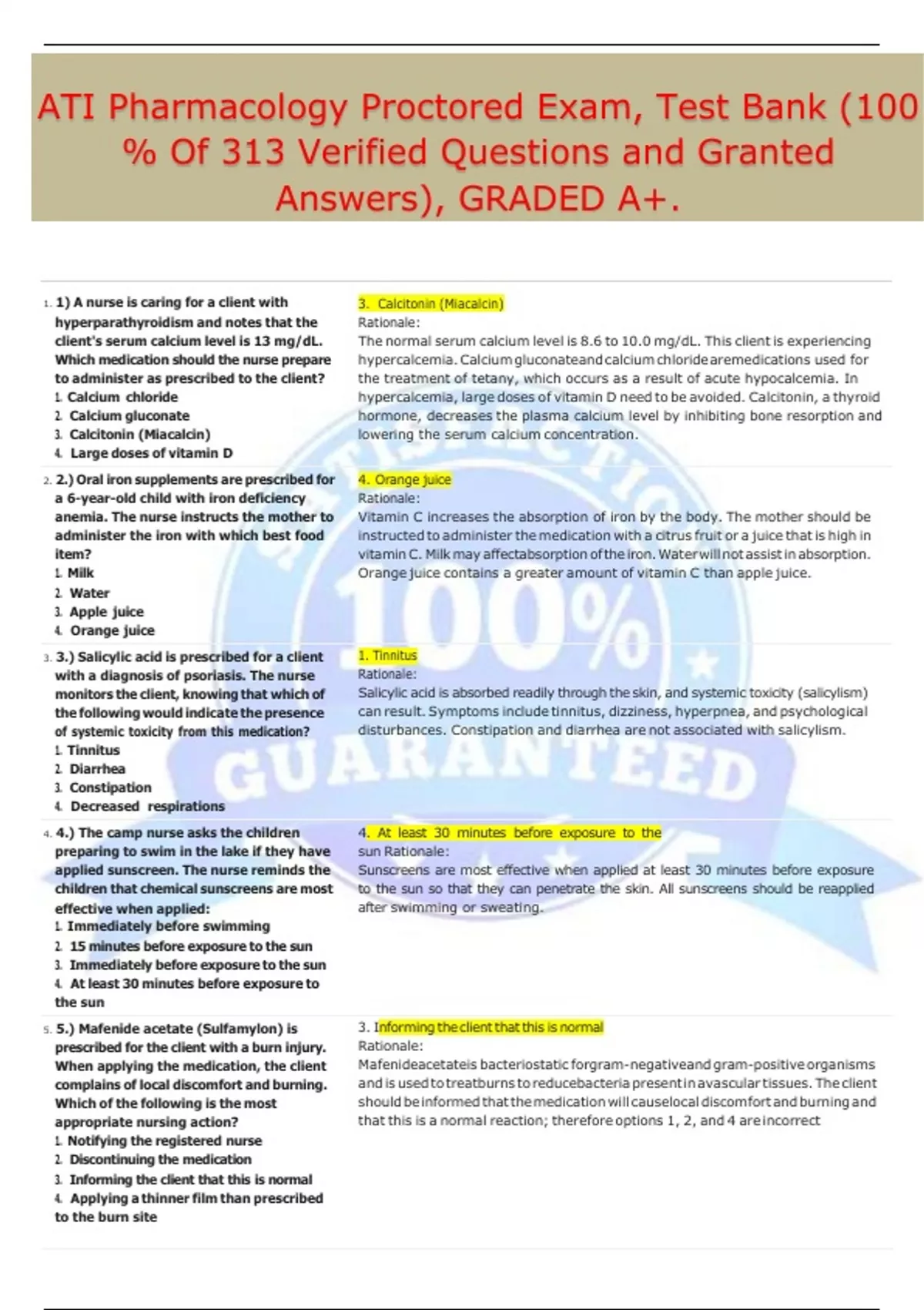 ATI Pharmacology Proctored Exam, Test Bank (100 % Of 313 Verified Questions and Granted Answers), GRADED A+.ATI Pharmacology Proctored Exam, Test Bank (100 % Of 313 Verified Questions and Granted Answers), GRADED A+.