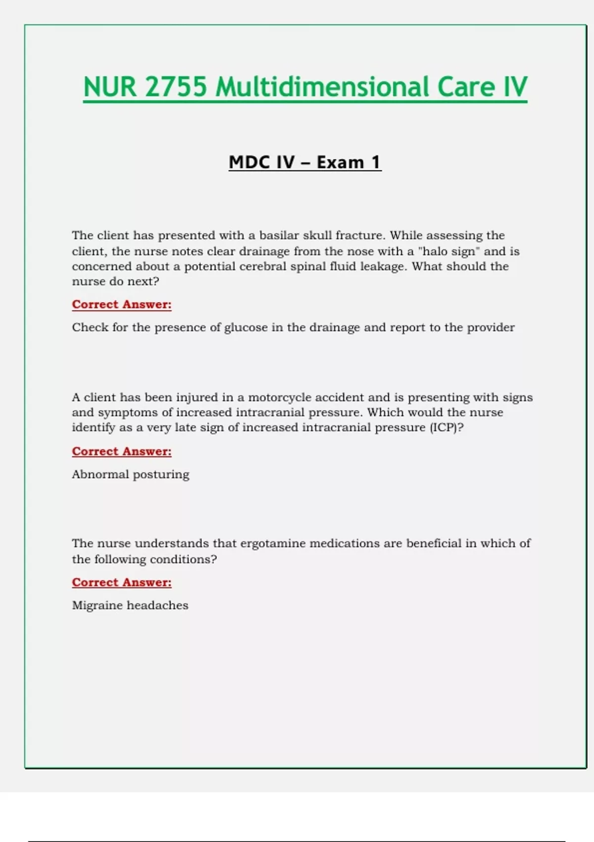 Exam 1: NUR2755 / NUR 2755 (Latest 2024 / 2025 Updates STUDY BUNDLE WITH COMPLETE SOLUTIONS) Multidimensional Care IV / MDC 4 | Questions and Verified Answers | 100% Correct | Graded A - Rasmussen