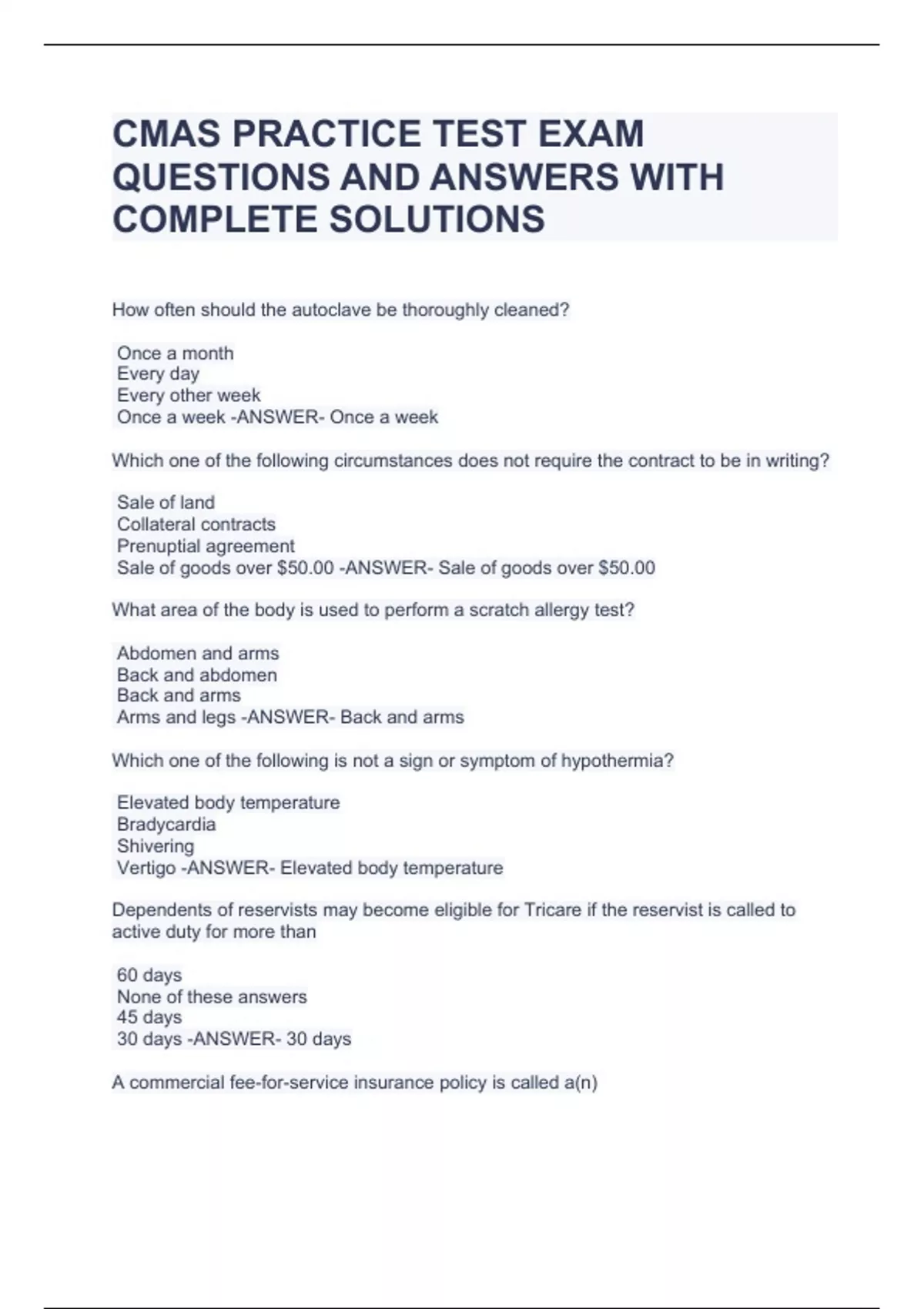 CMAS PRACTICE TEST EXAM QUESTIONS AND ANSWERS WITH COMPLETE SOLUTIONS