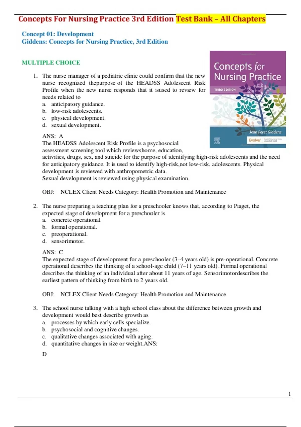Concepts For Nursing Practice 3rd Edition Test Bank - Complete Guide