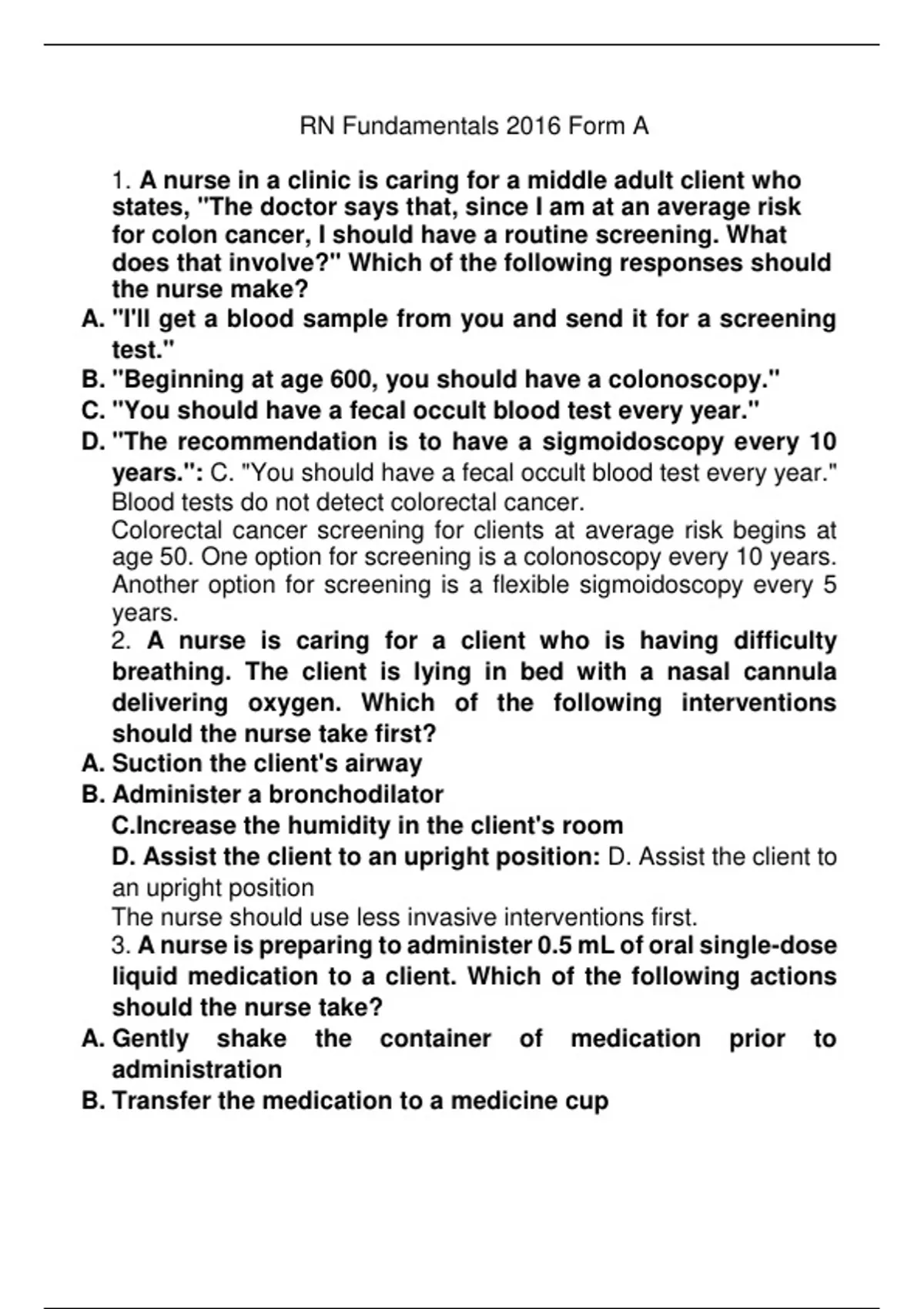 RN Fundamentals 2016 Form A