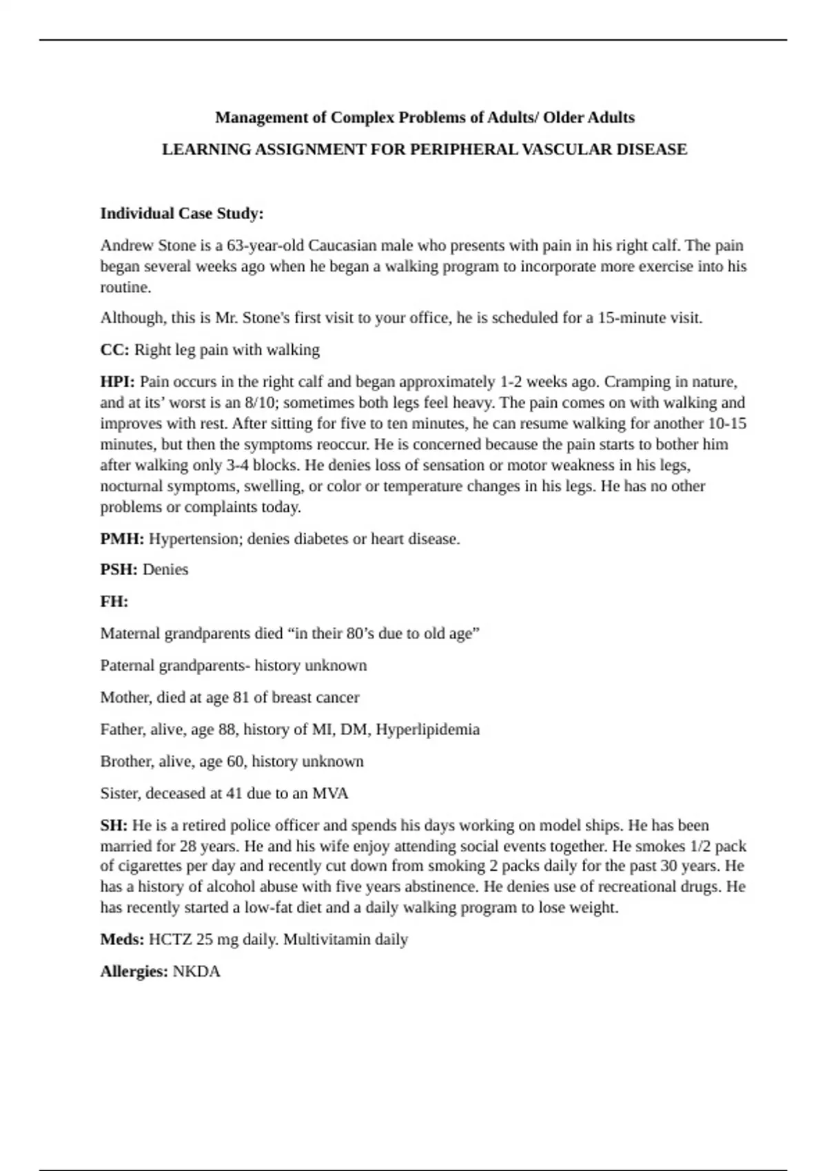 PERIPHERAL VASCULAR DISEASE (PVD) Case Study S. Jimenez Final Exam