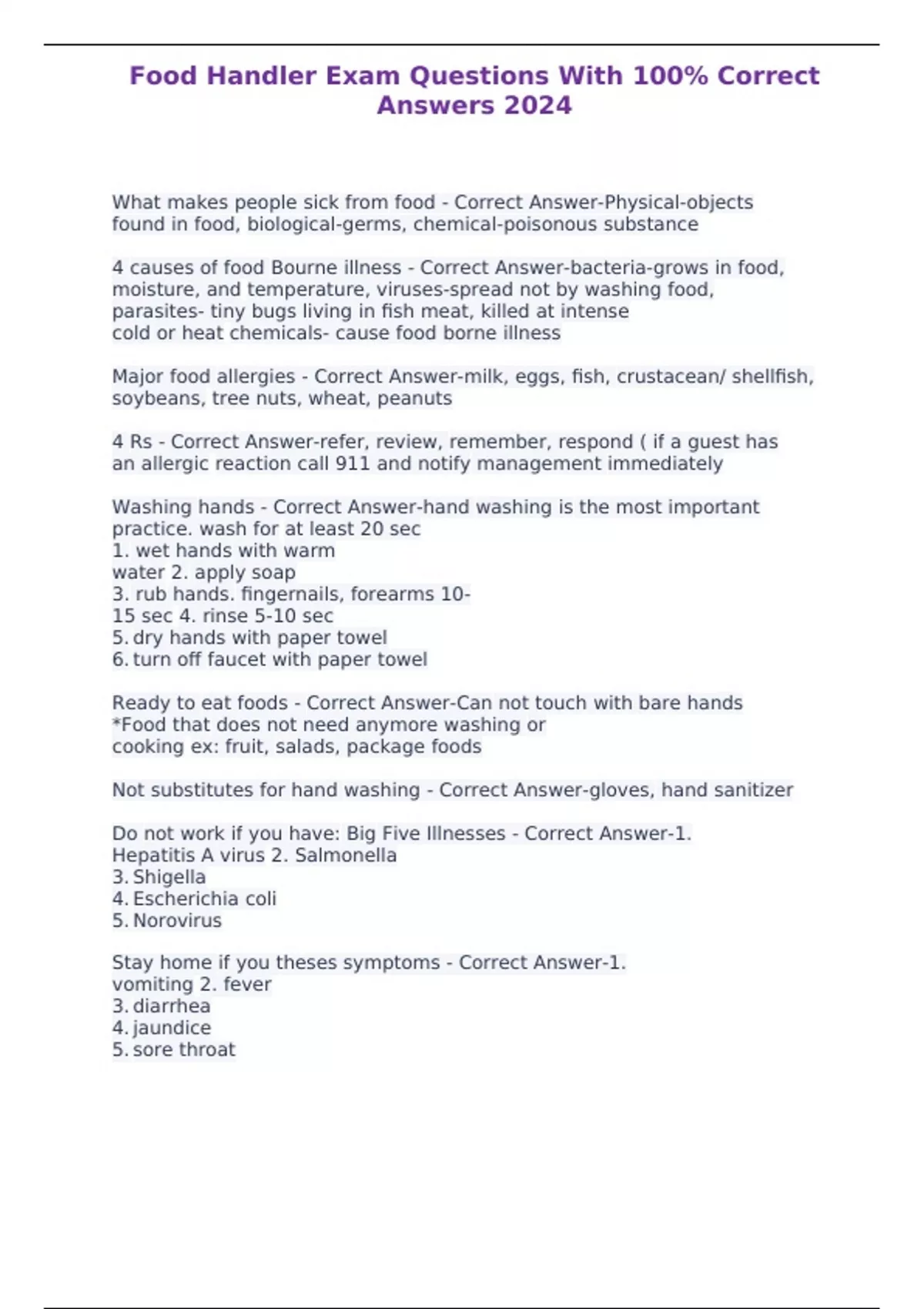 Food Handler Exam Questions With 100% Correct Answers 2024