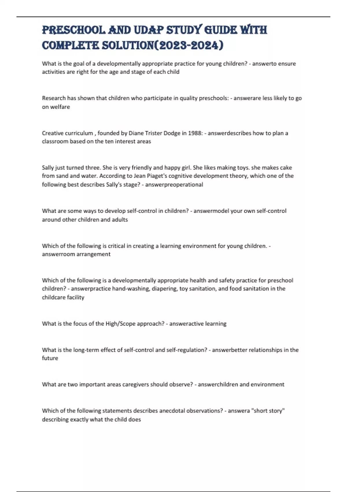Preschool and UDAP study guide with complete solution()