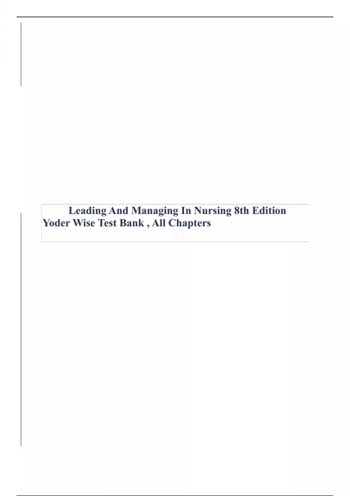 Leading And Managing In Nursing 8th Edition Yoder Wise Test Bank , All Chapters