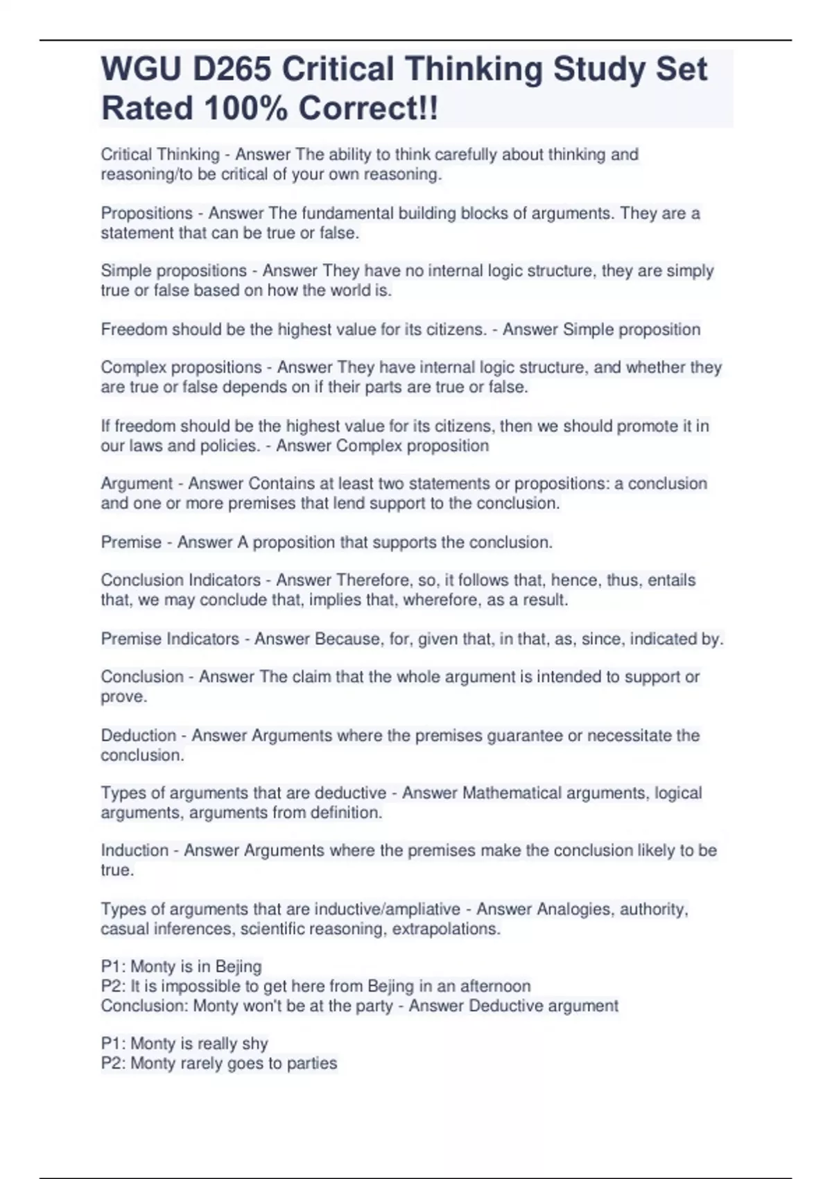 WGU D265 Critical Thinking Study Set Rated 100% Correct!!