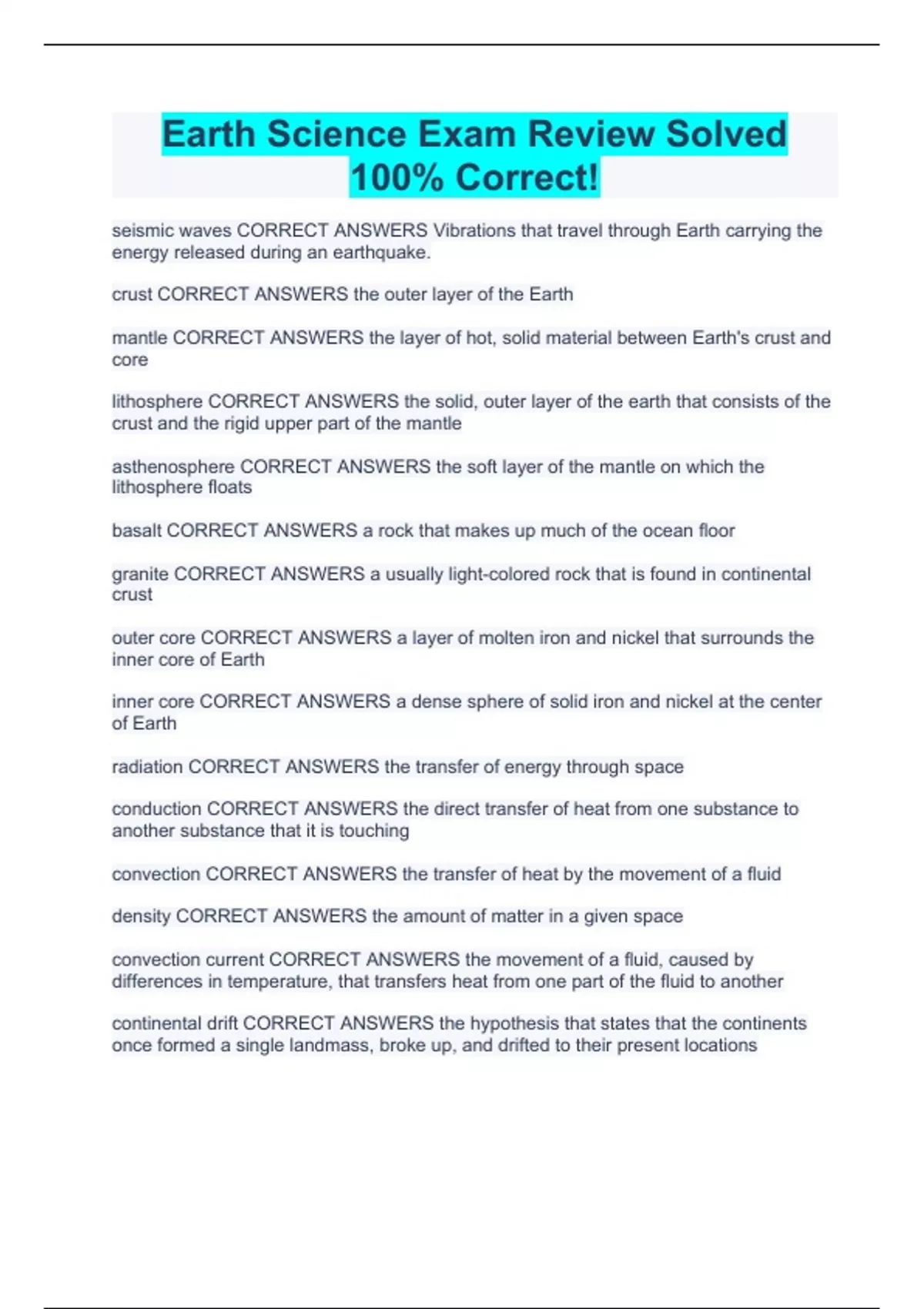 Earth Science Exam Review Solved 100% Correct!
