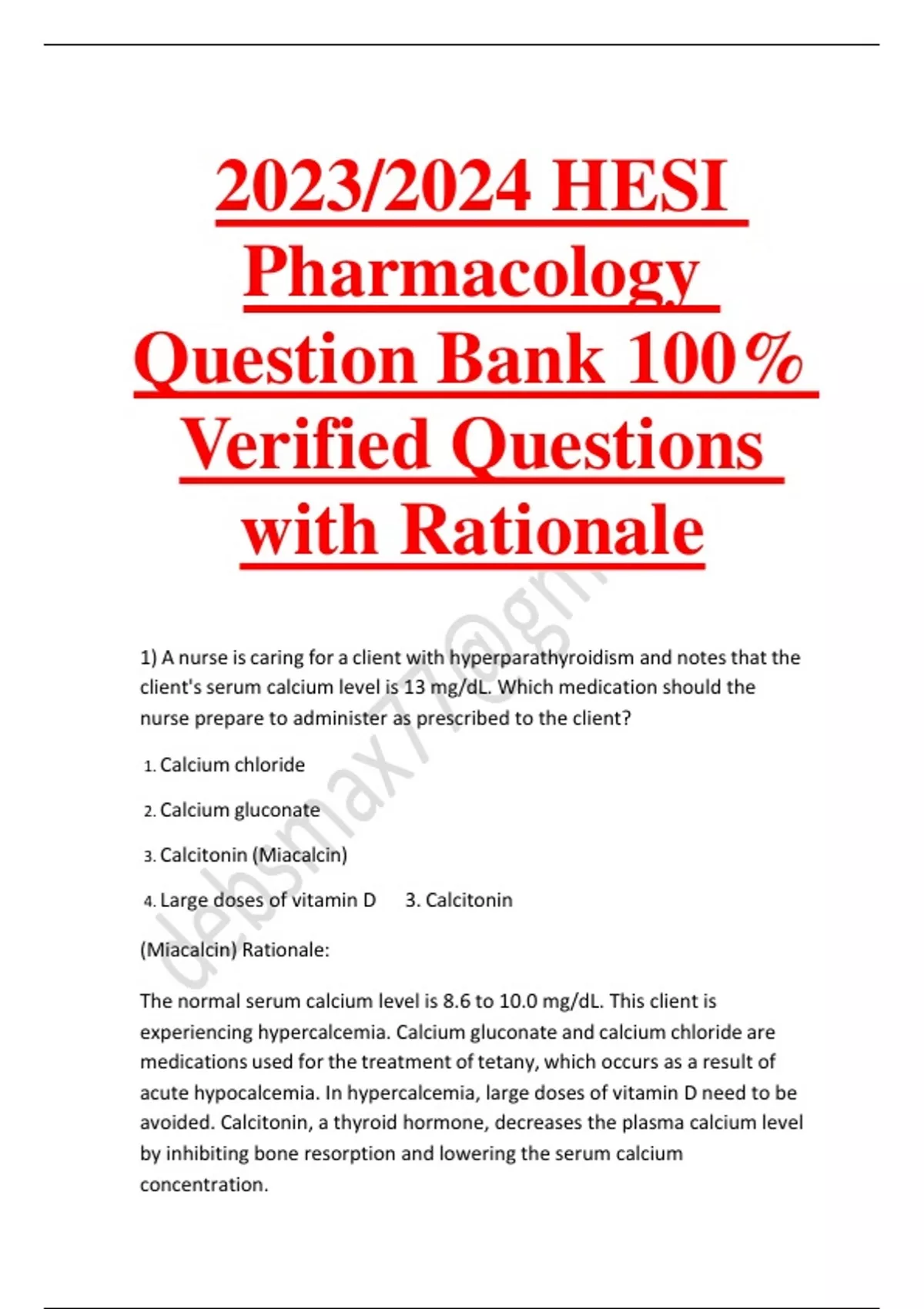 2023/2024 HESI Pharmacology Question Bank 100% Verified Questions with Rationale