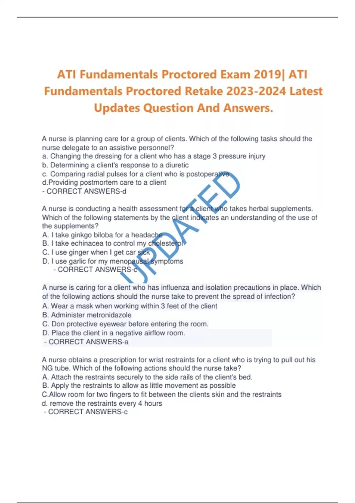 ATI Fundamentals Proctored Retake Latest Updates Question And Answers. ATI Fundamentals Proctored Retake Latest Updates Question And Answers.