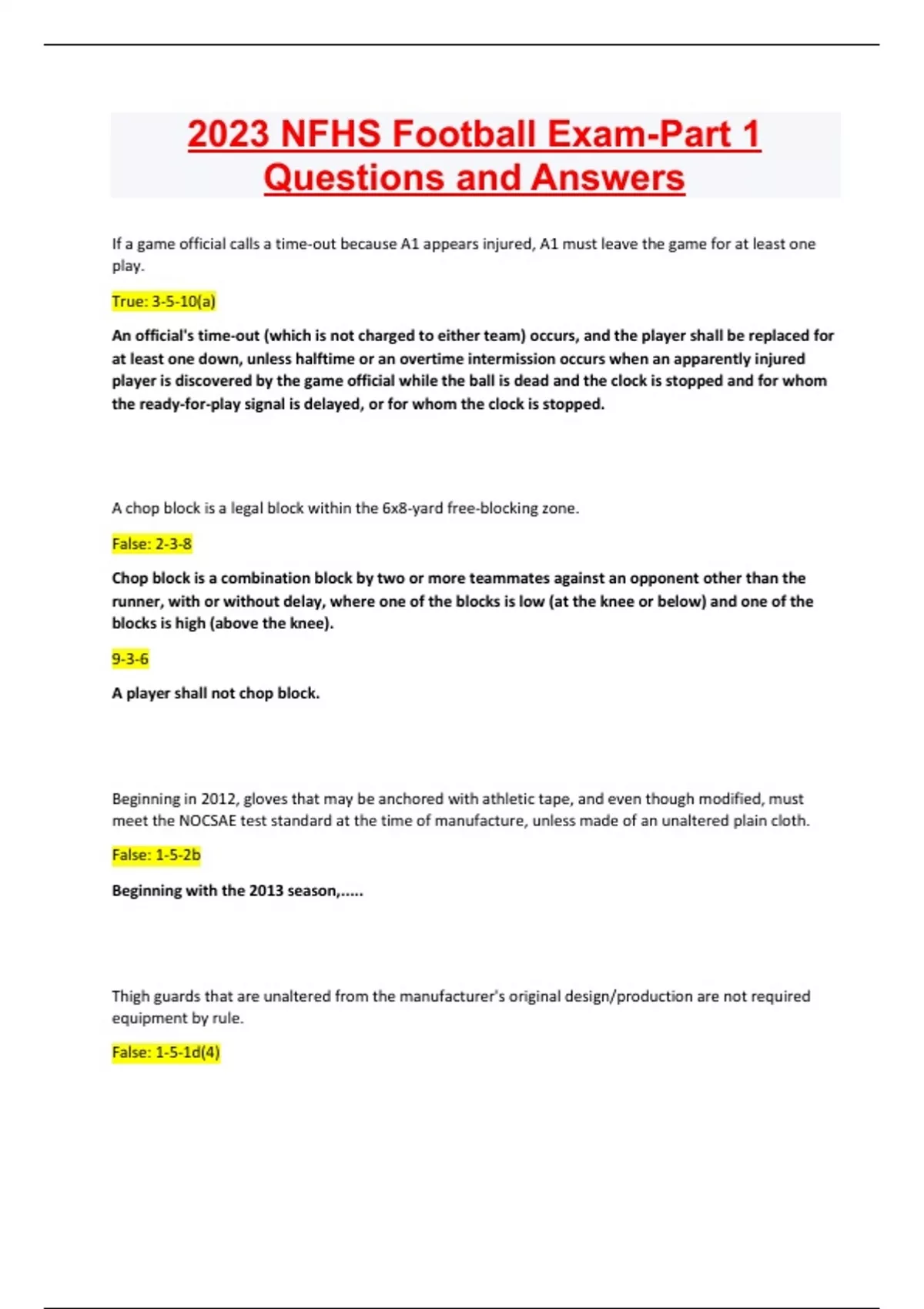 2023 NFHS Football Exam-Part 1 Questions and Answers