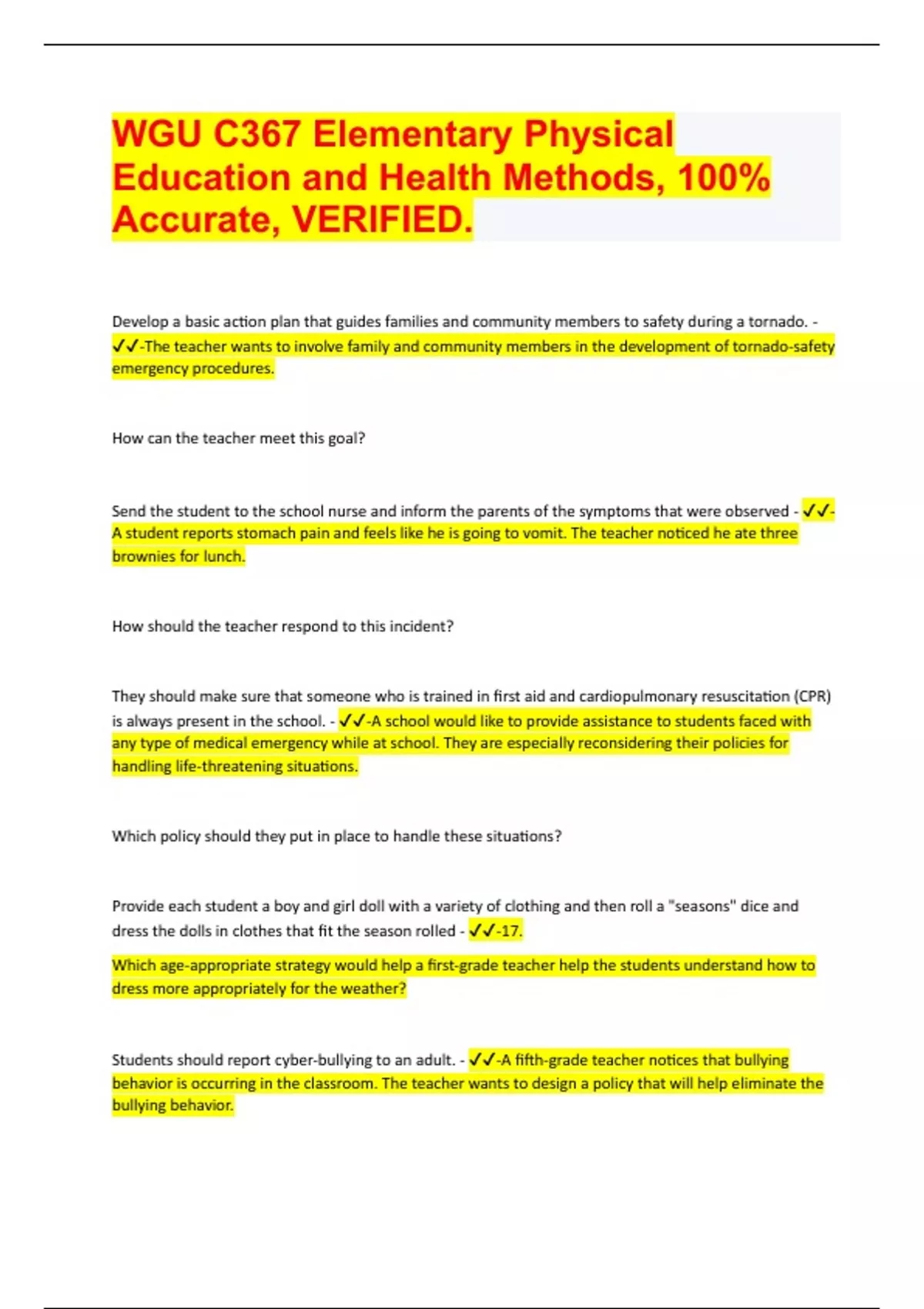 (Top QUALITY 2024/2025 EXAM REVIEW) WGU C367 Elementary Physical Education and Health Methods, 100% Accurate, VERIFIED.