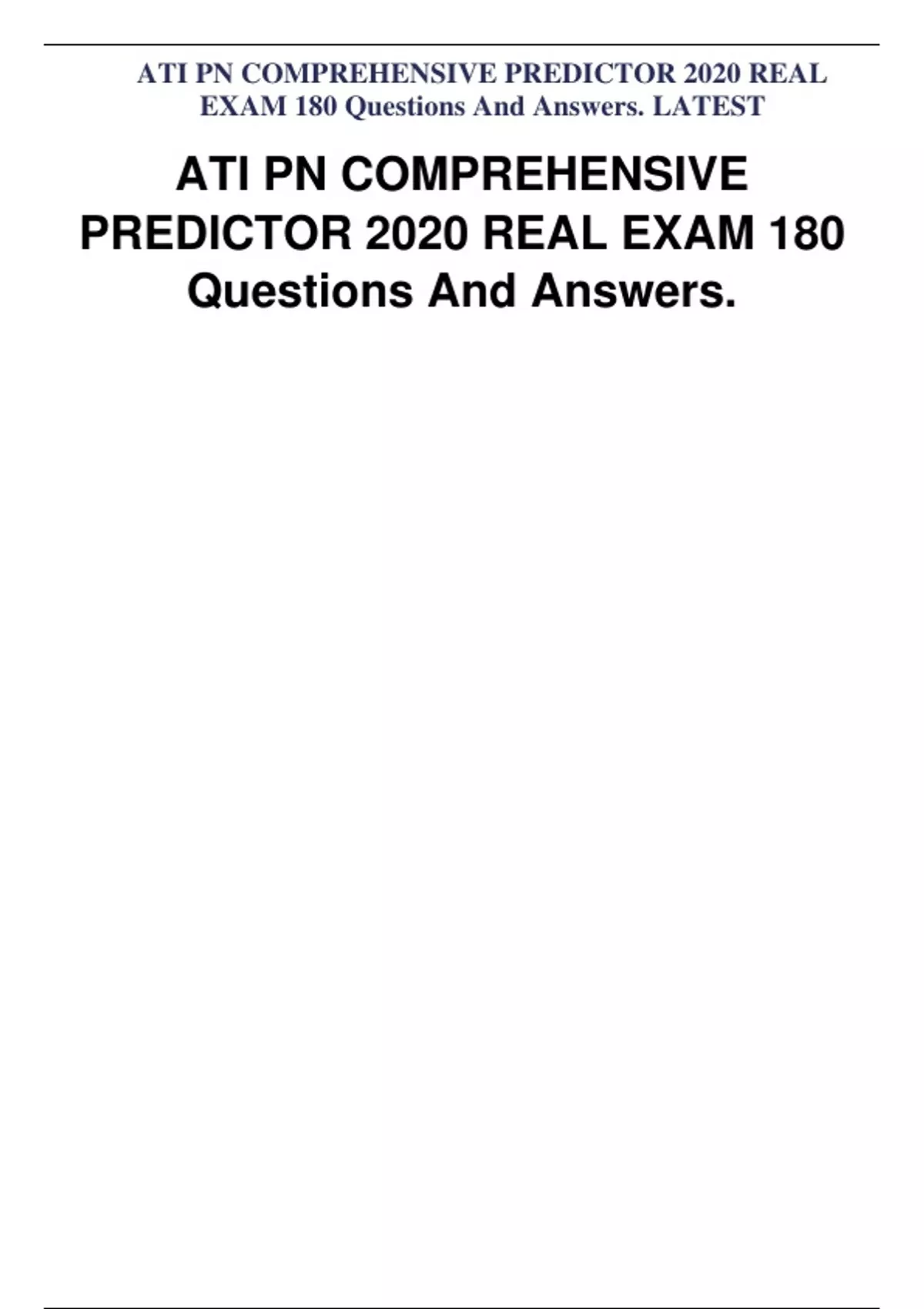 ATI PN COMPREHENSIVE PREDICTOR 2020 REAL EXAM 180 Questions And Answers. ATI PN COMPREHENSIVE PREDICTOR 2020 REAL EXAM 180 Questions And Answers. ATI PN COMPREHENSIVE PREDICTOR 2020 REAL EXAM 180 Questions And Answers.