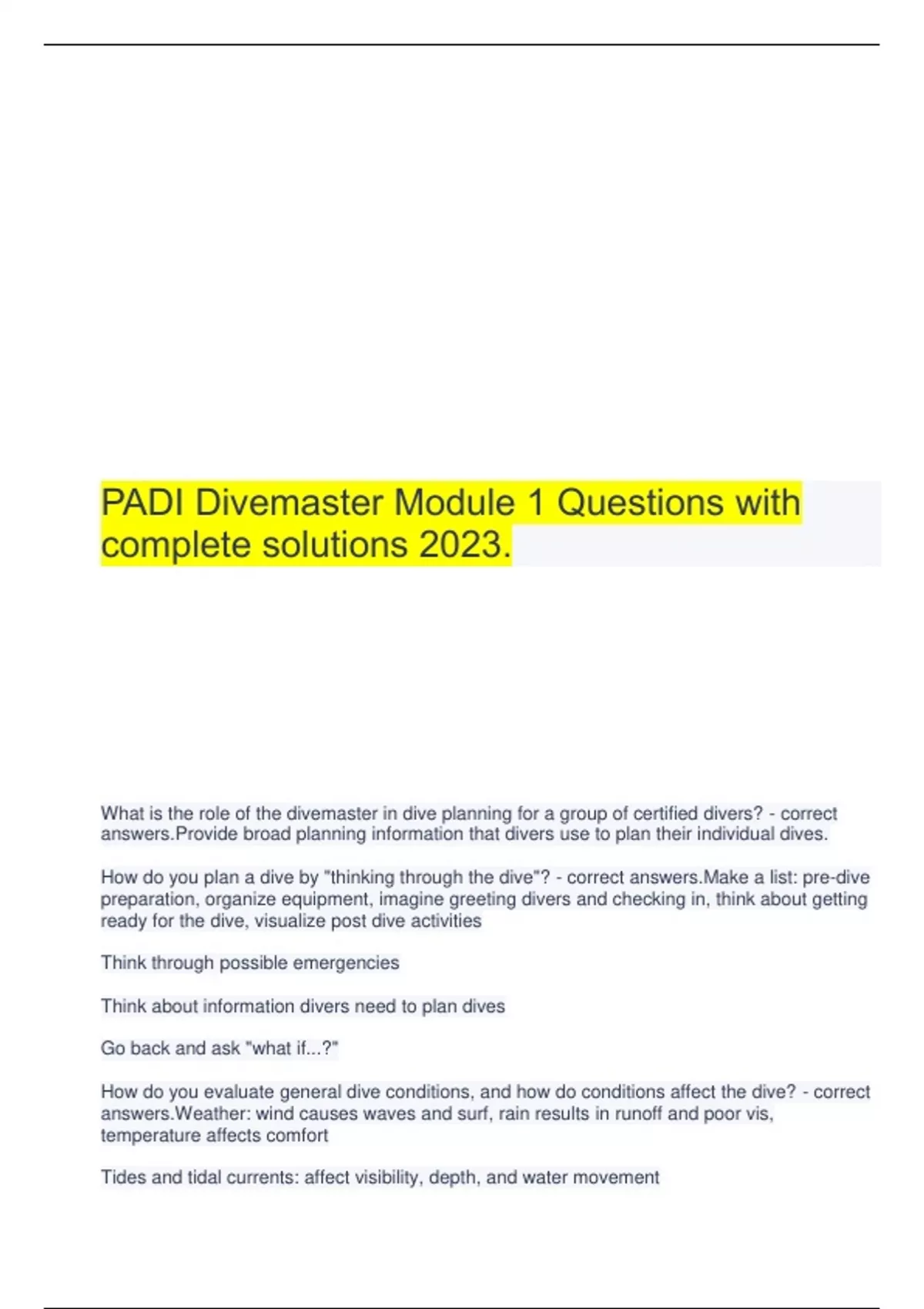 PADI Divemaster Module 1 Questions with complete solutions 2023.