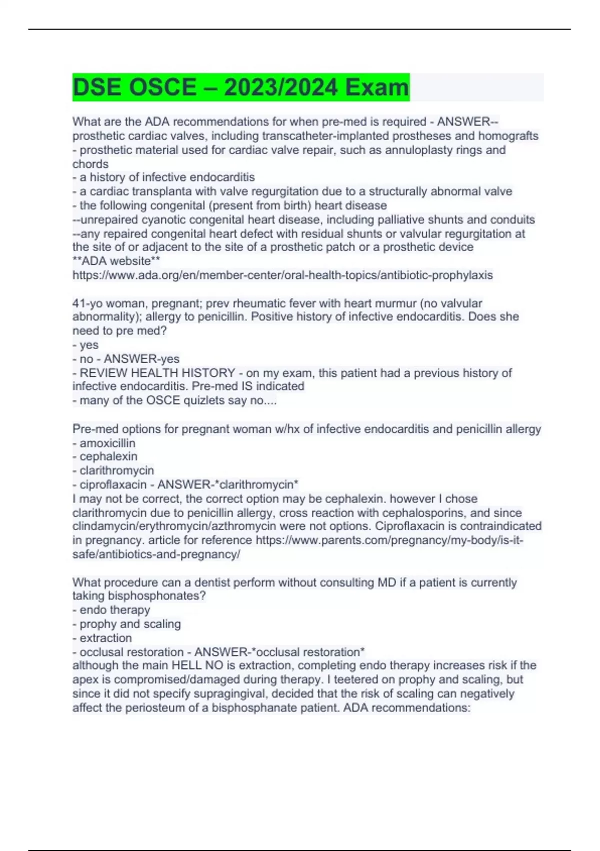 OSCE/CDCA OSCE/DSE OSCE/Dental OSCE Exam Package Deal -Solved