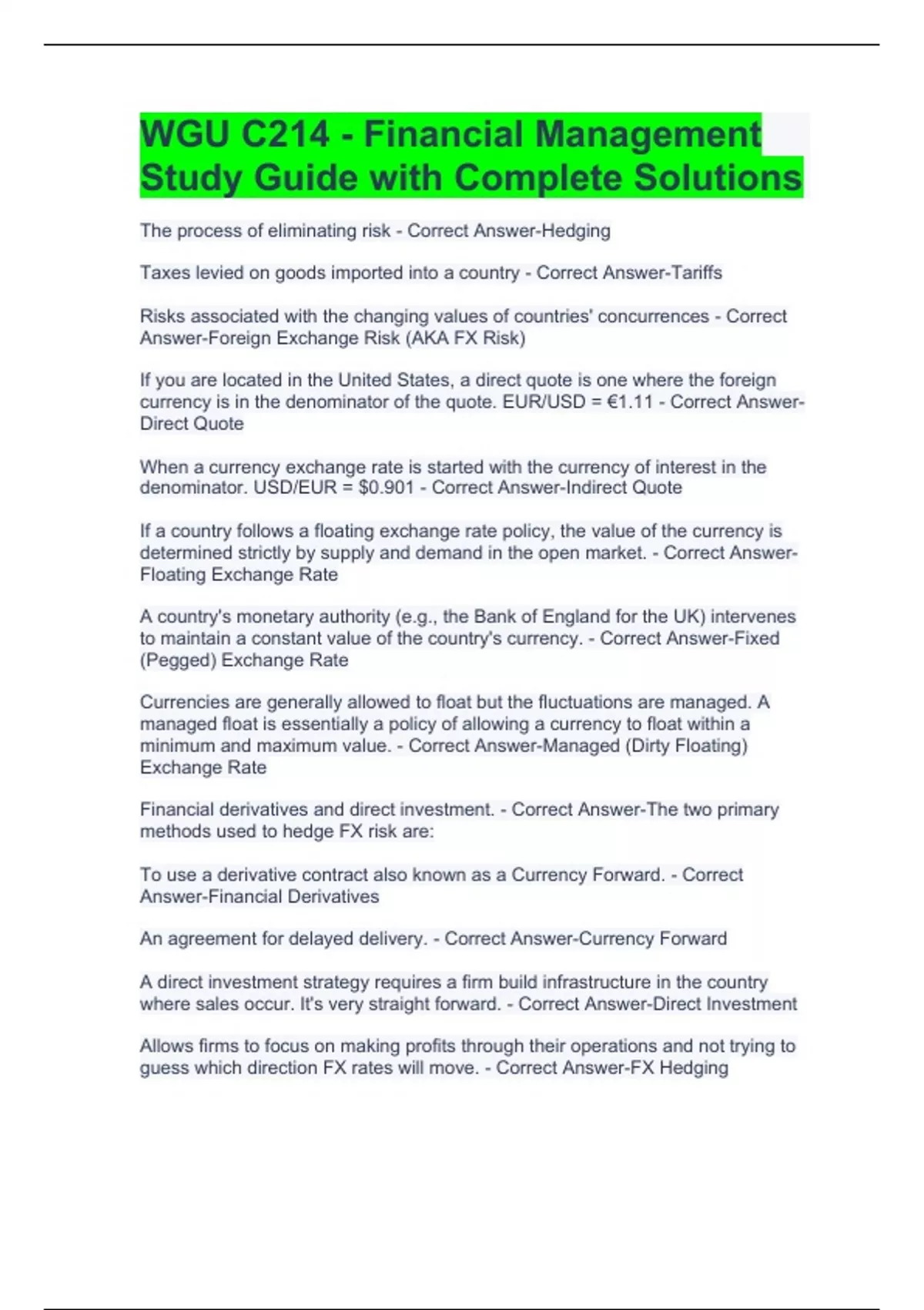 WGU C214 - Financial Management Study Guide with Complete Solutions