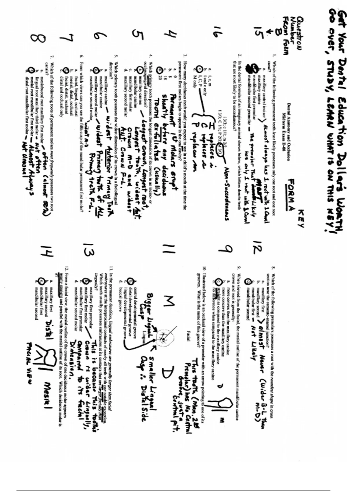 dental anatomy 2008 exam