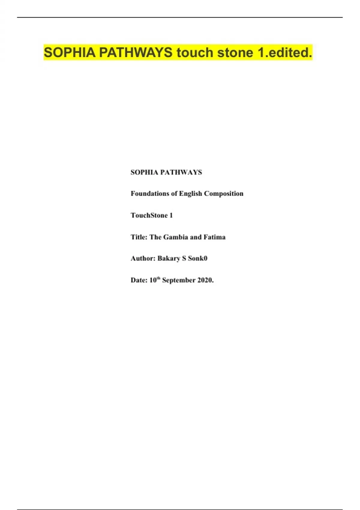 SOPHIA PATHWAYS touch stone 1 What do you think your strengths and weaknesses are in terms of sentence construction and paragraph development?