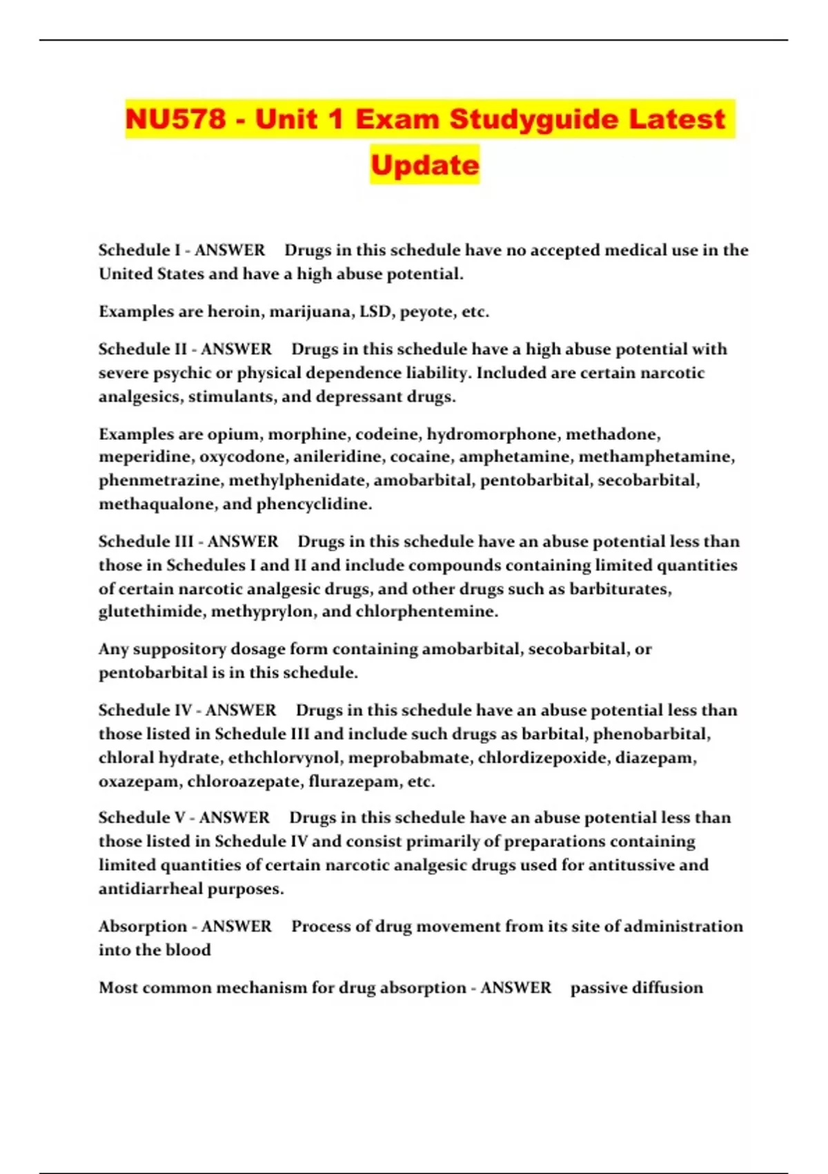 NU578 - Unit 1 Exam Studyguide Latest Update...