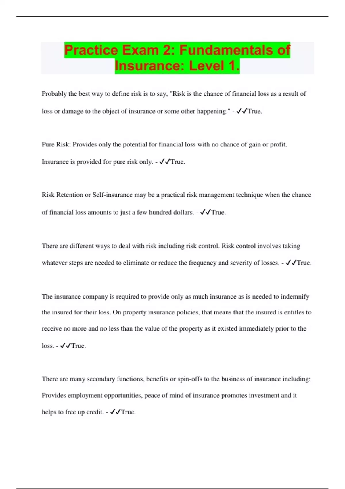 Practice Exam 2: Fundamentals of Insurance: Level 1 | Questions with 100% Correct Answers | Latest Update 2024 | Verified