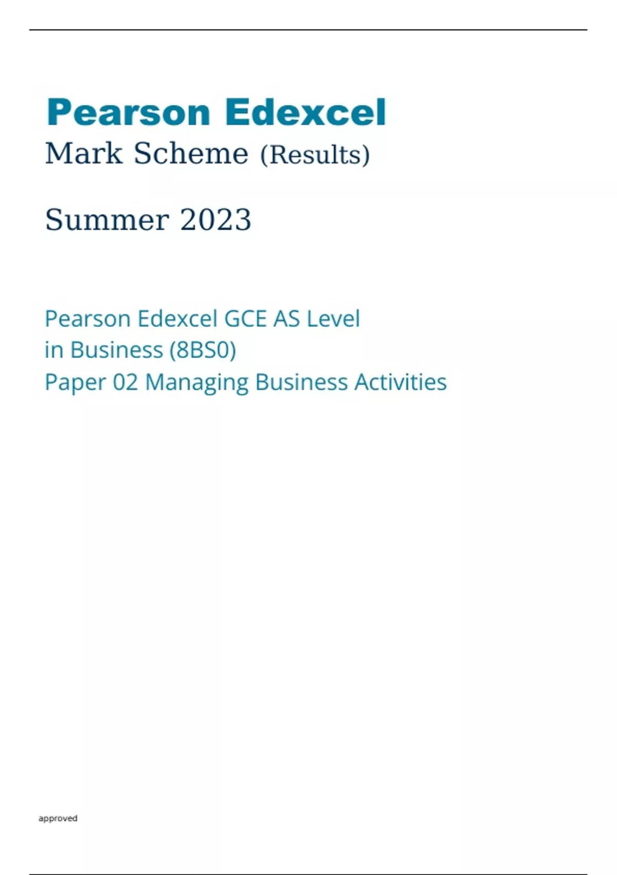 Pearson Edexcel Business 8BS0/02 Mark Scheme June2023.